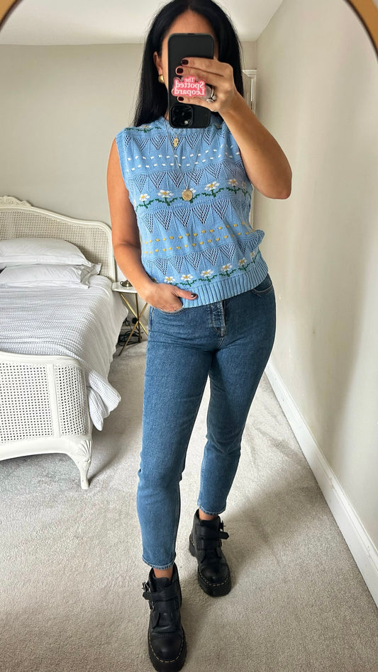 Warehouse light blue daisy print knitted waistcoat vest top large L UK 12 excellent used condition