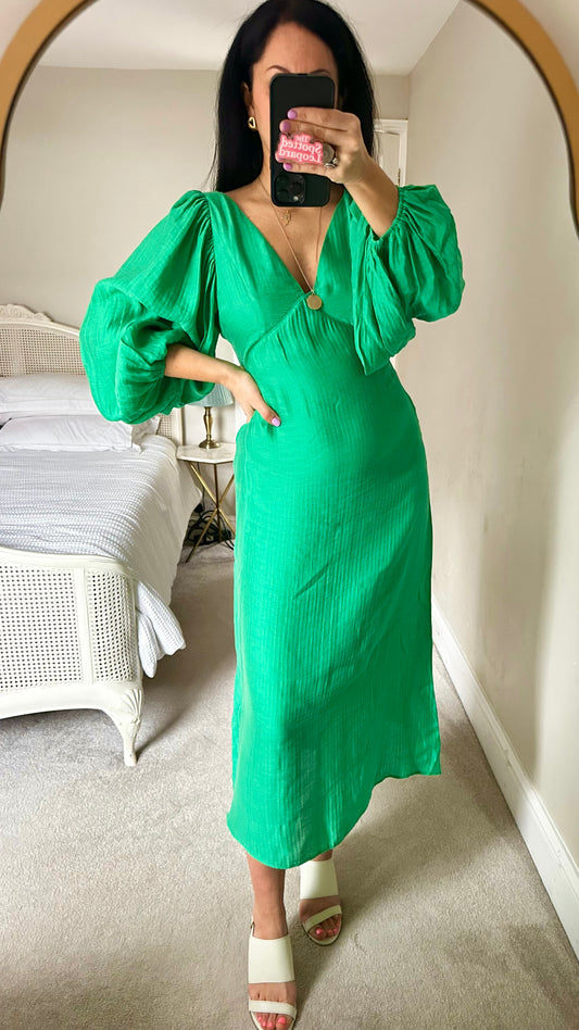 Nobody’s Child green emerald tie back midi long event wedding guest dress small UK 8 vgc