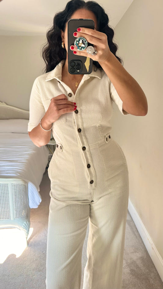 & other stories cream corduroy jumpsuit boiler suit trousersuit small UK 10 vgc
