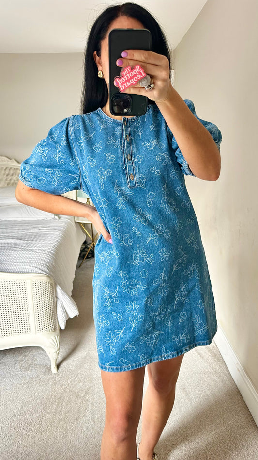 Nobody’s Child light blue white denim jeans mini dress medium UK 12 vgc