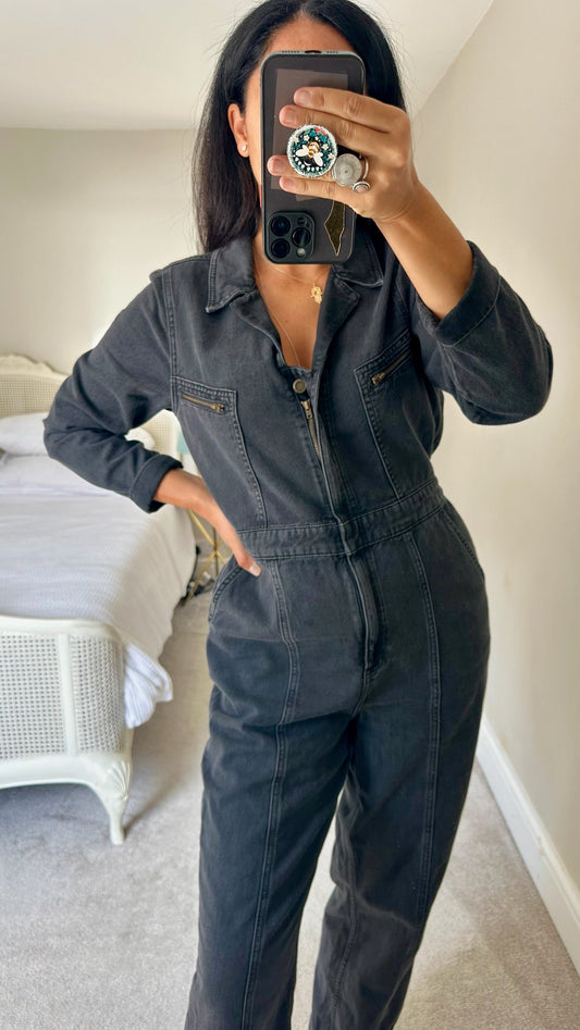 Oliver bonas black boiler suit jumpsuit trouser suit jeans denim small UK 8
