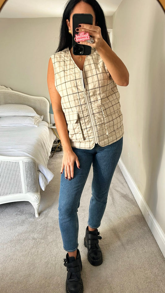 Selected femme @Anthropologie beige cream gingham quilted waistcoat vest jacket small S UK 8