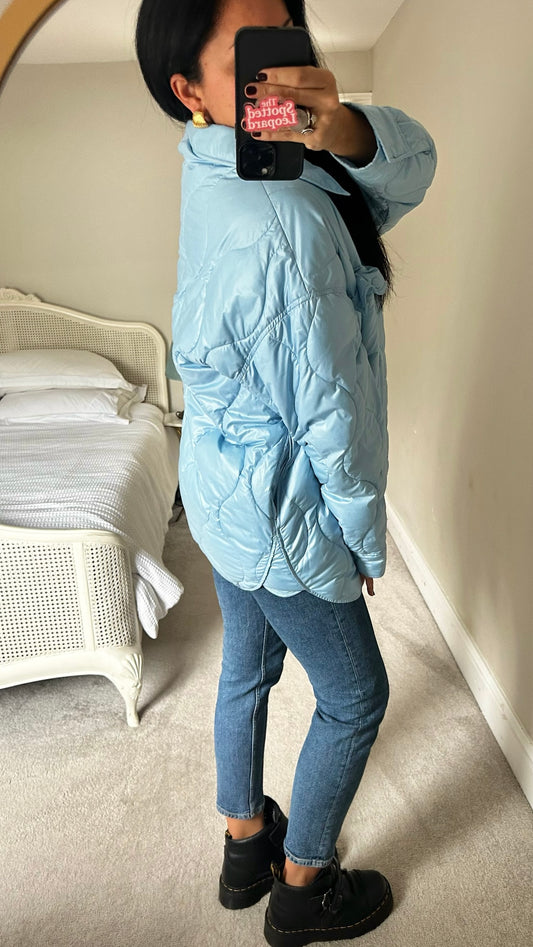 Arket light blue quilted oversized shacket jacket coat extra large XL UK 14 excellent used condition