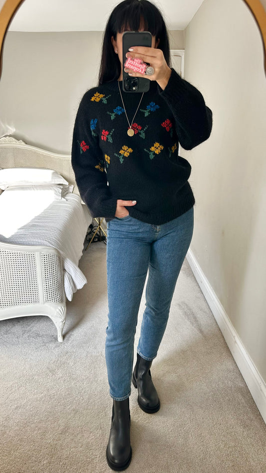 Vintage black mohair wool blend chenille C&A knitted jumper medium UK 12 vgc