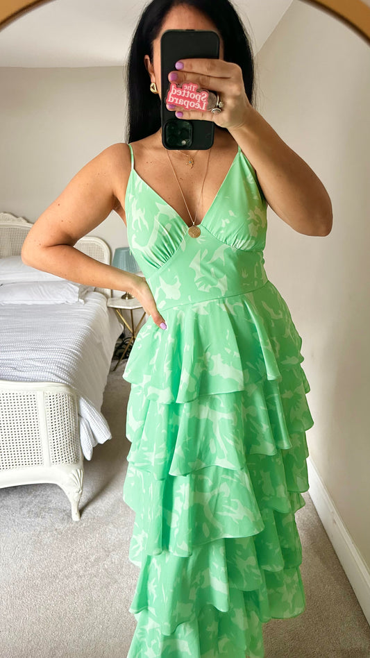 Pretty Lavish mint green white tiered wedding guest dress midi long event UK 14 medium