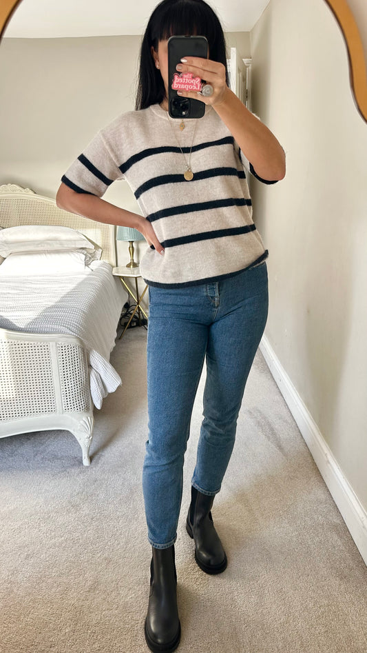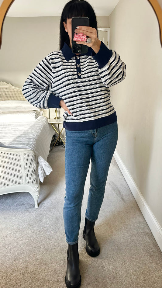 & other stories navy blue silver stripe knitted jumper large UK 14 vgc