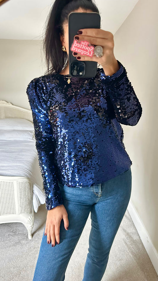 Selected Femme @ Anthropologie navy blue sequin Christmas top small new bnwt UK 8 XMS25