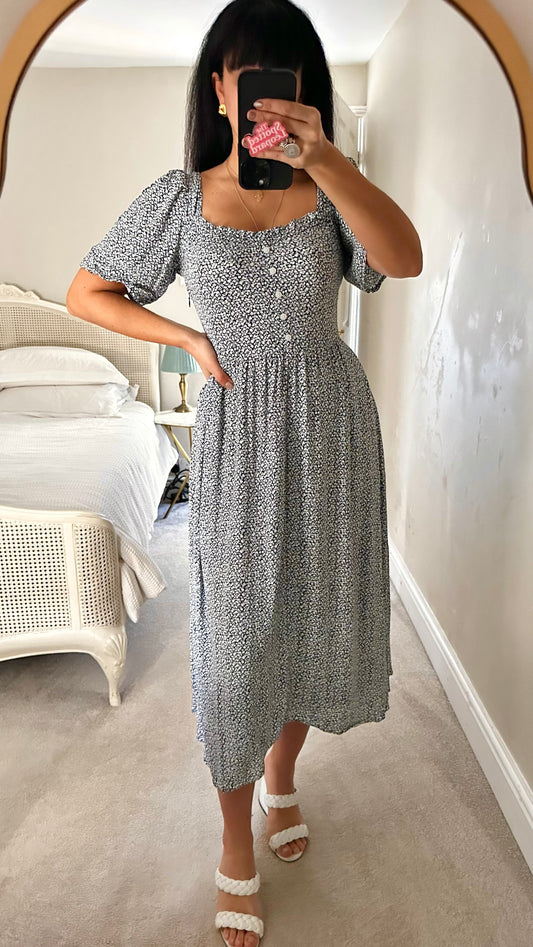 & other stories black blue floral midi long dress medium UK 12 vgc