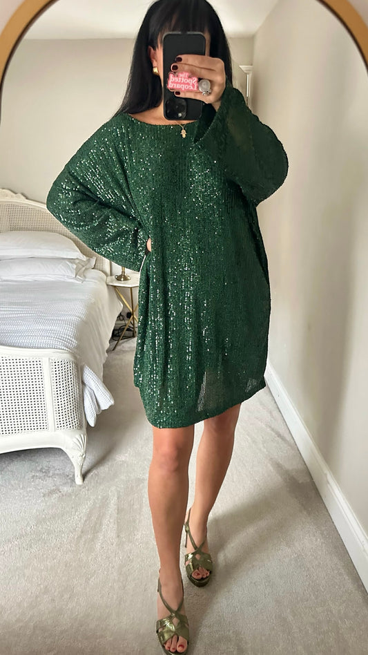 ASOS forest green sequin low back mini dress extra large XL UK 14 Christmas XMS25