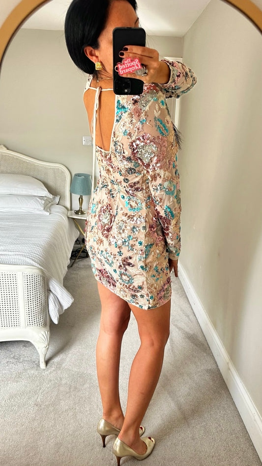 ASOS pink snowdrop sequin mini party dress small UK 8 vgc