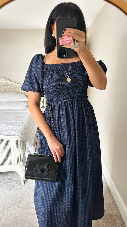 & other stories black white blue polka dot side split midi long dress small UK 10 vgc