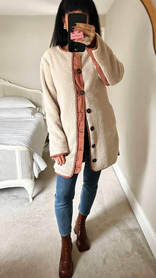 Maison Scotch @ Anthropologie cream tan fluffy coat jacket medium UK 12-4 vgc