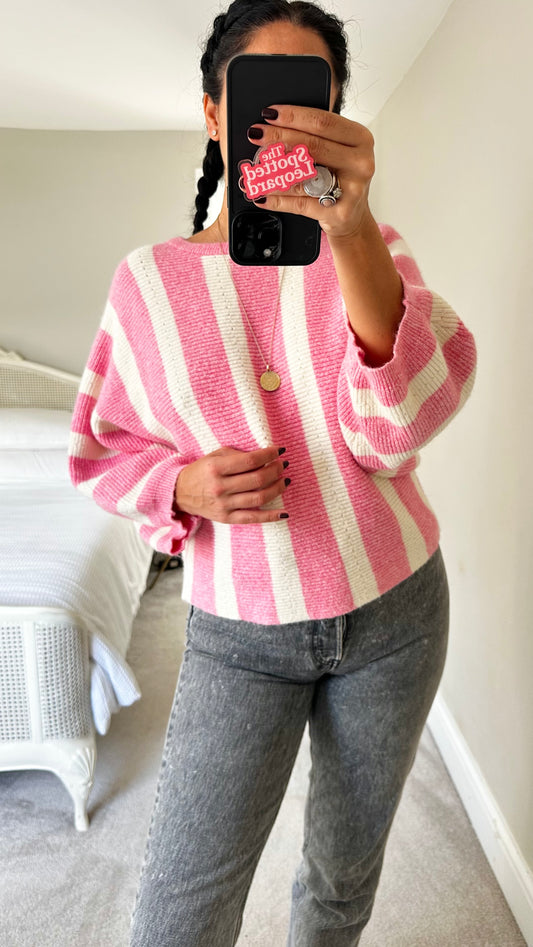 Oliver Bonas pink cream white stripe ice cream jumper small medium UK 10 vgc
