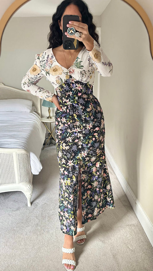Never Fully Dressed black cream lilac floral maxi event dress small UK 10 vgc