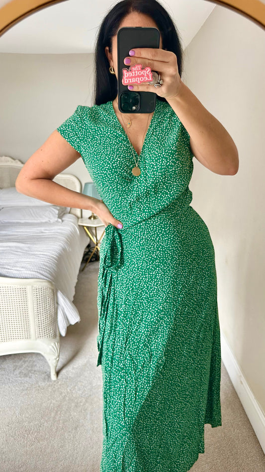 & other stories green white polka dot midi long dress medium UK 12 vgc