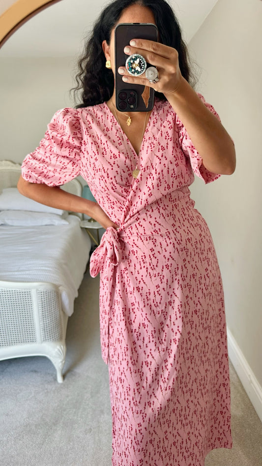 YAS pink burgundy floral wrap wedding guest dress extra large UK 14 vgc