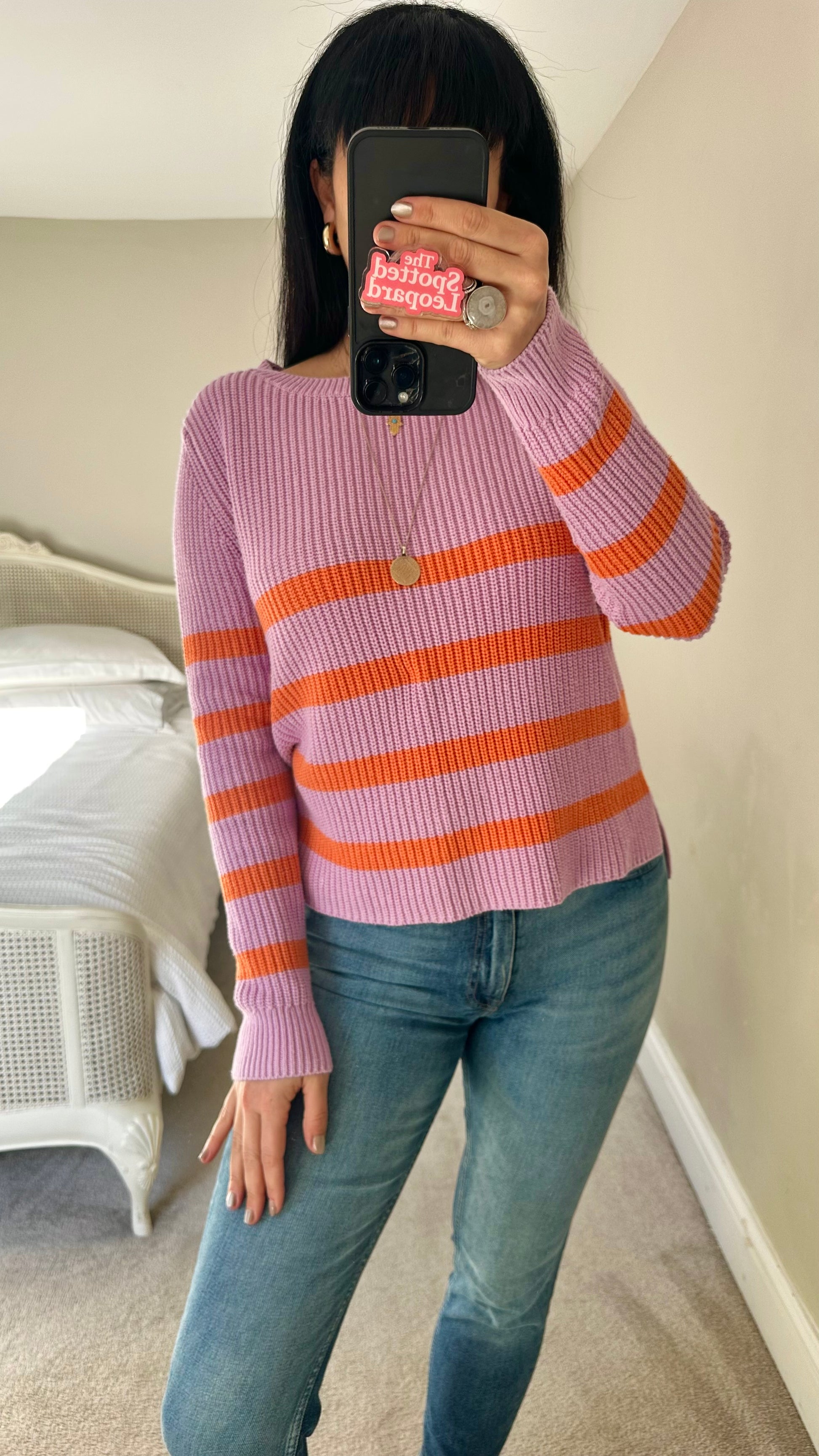 Mint Velvet lilac orange stripe knitted jumper small UK 8 10 vgc