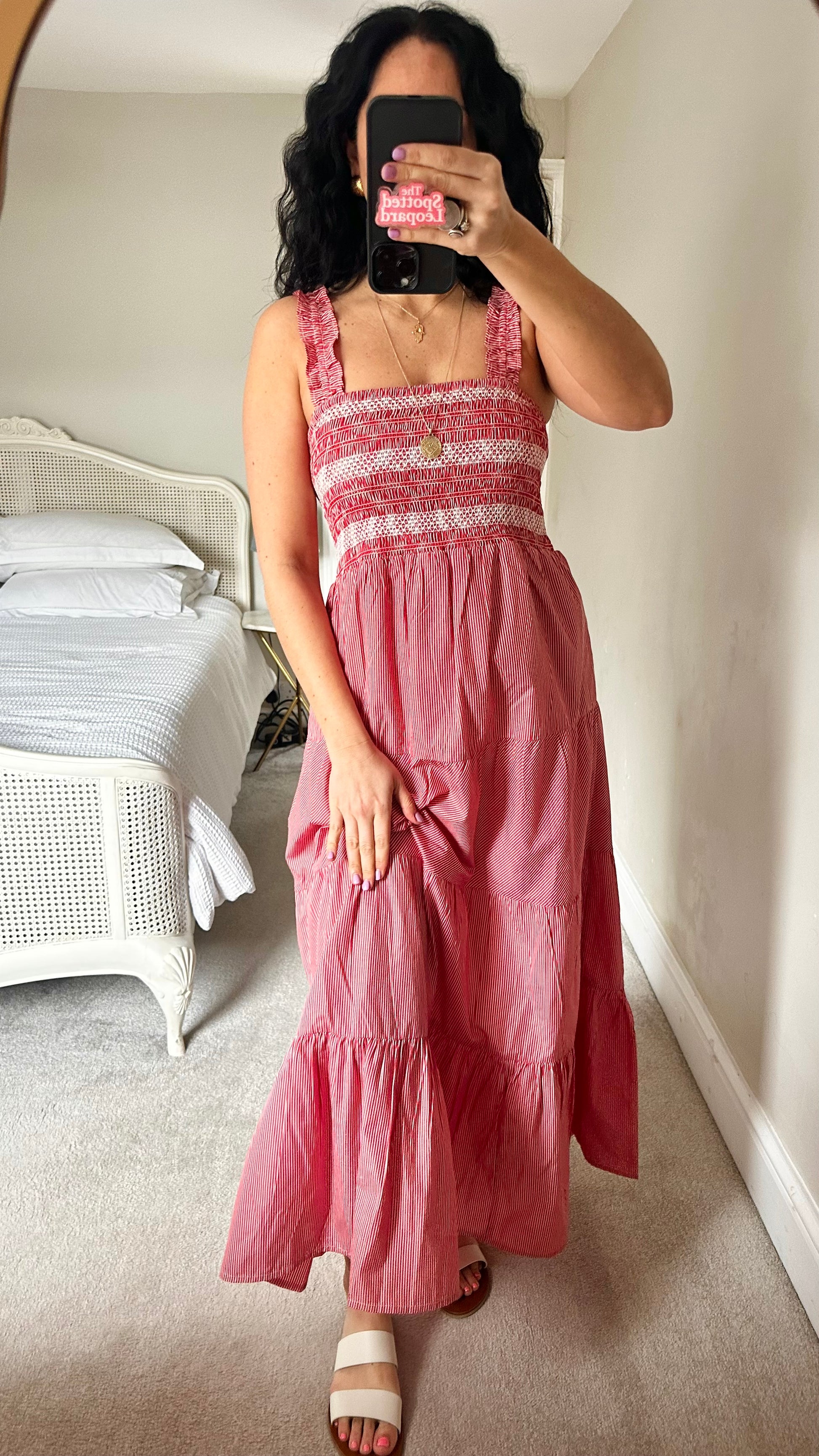 Accessorise red white stripe maxi midi long dress medium UK 14 vgc