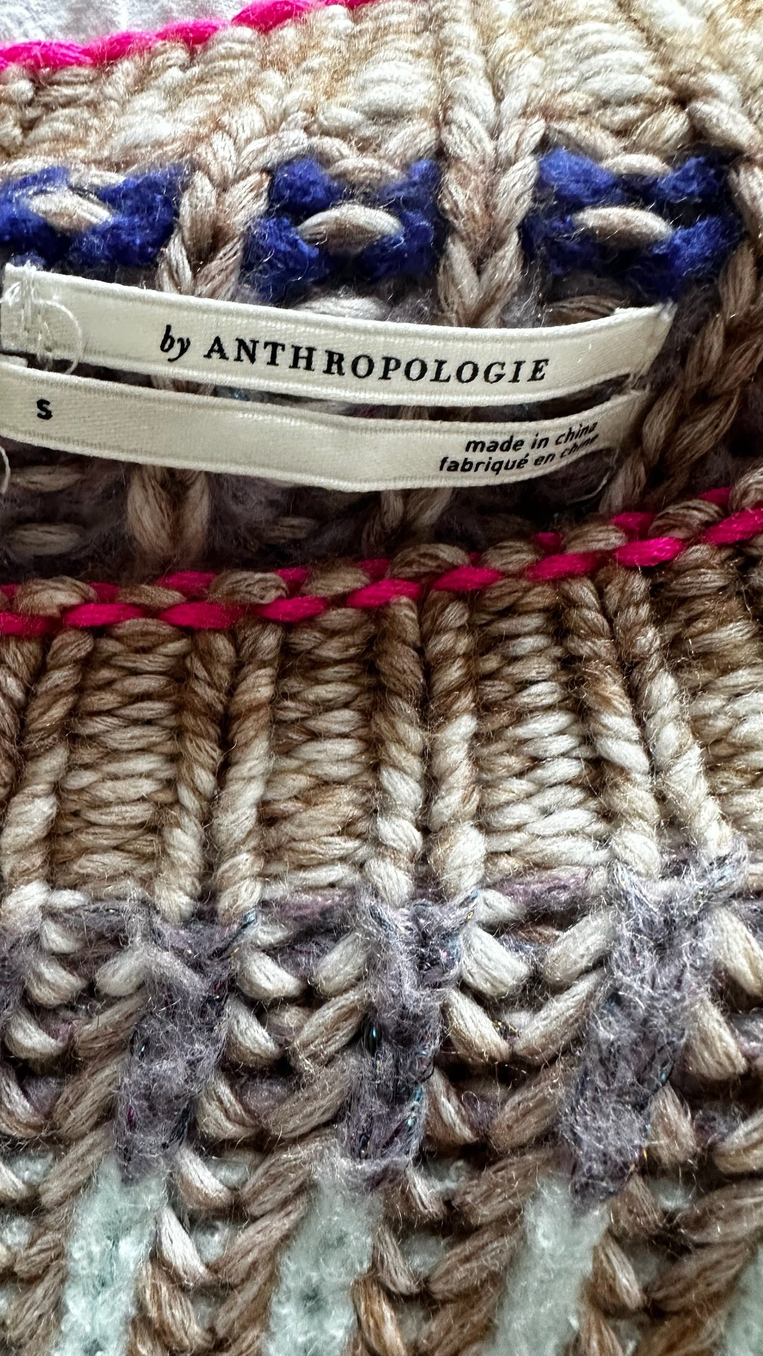 Anthropologie multi colour chunky knitted jumper small UK 8-10 vgc
