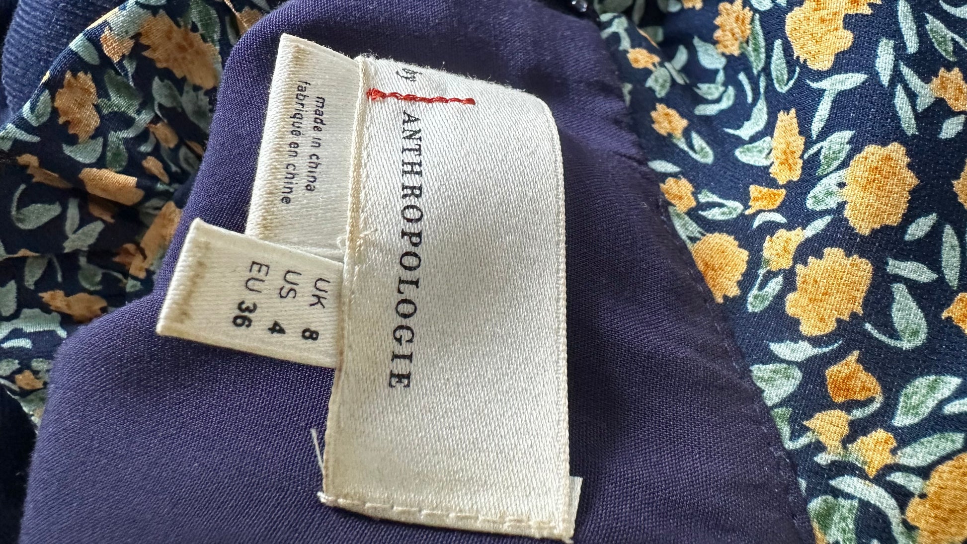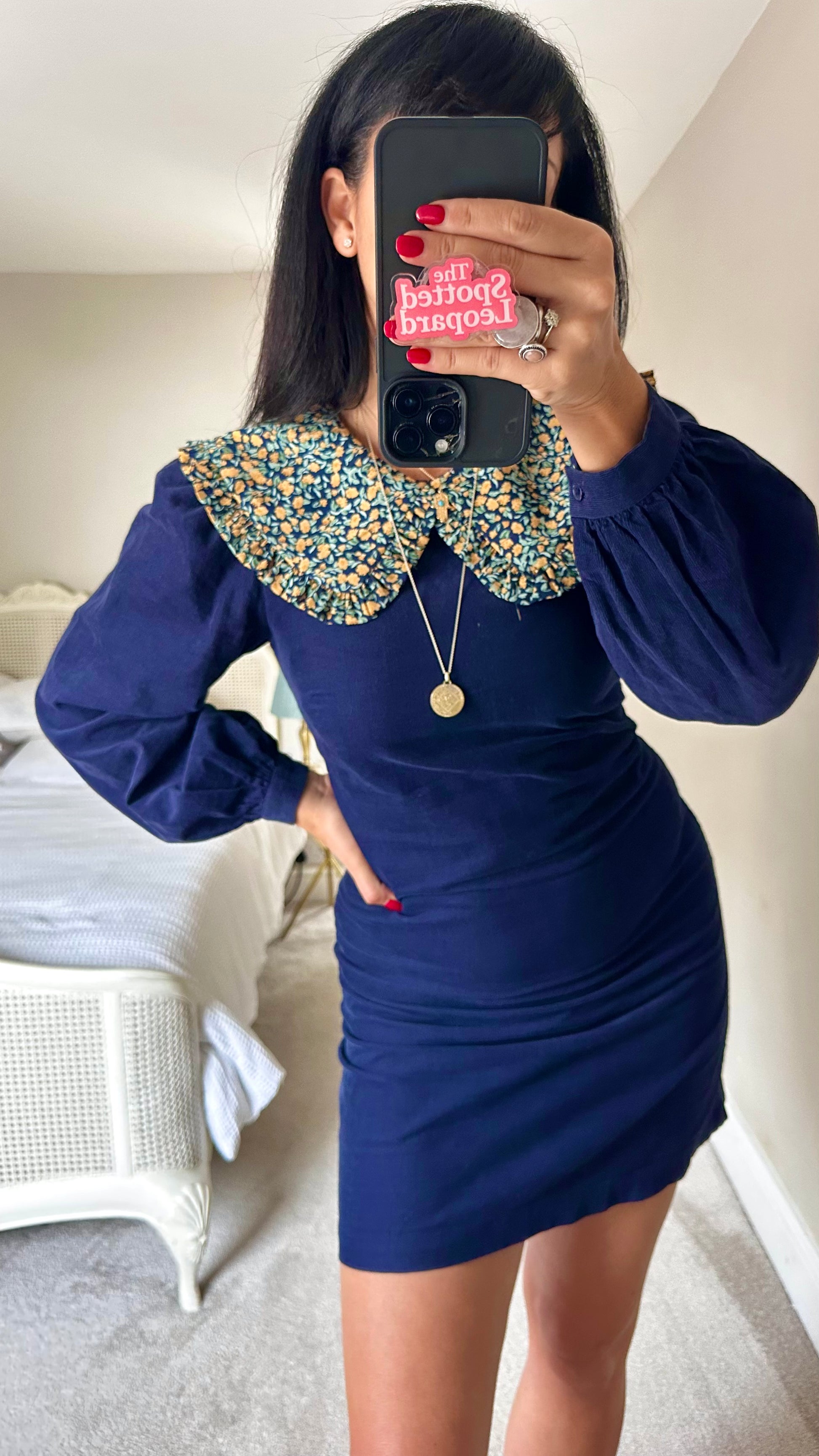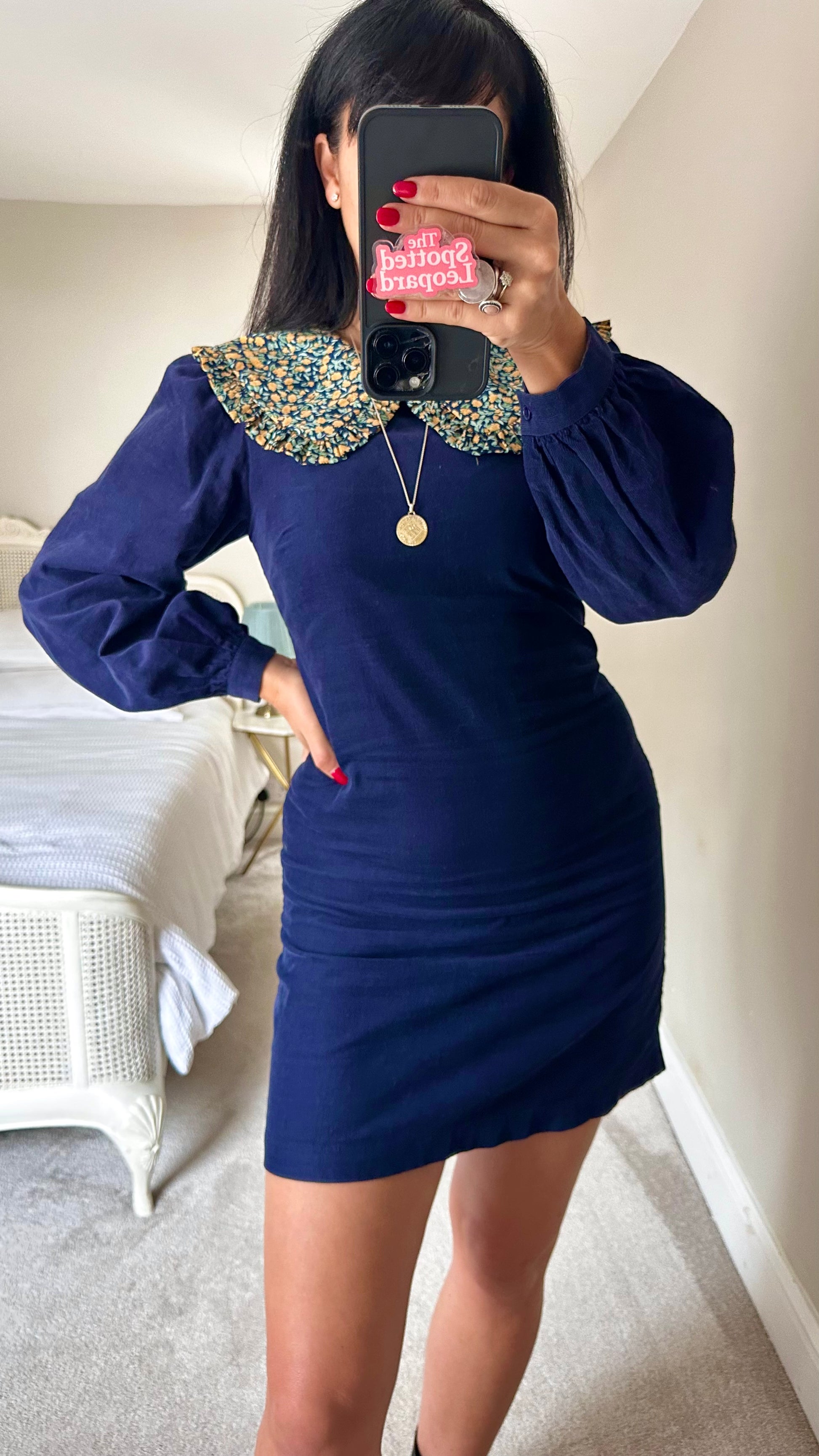 Anthropologie navy blue orange floral collared mini dress small UK 8 vgc