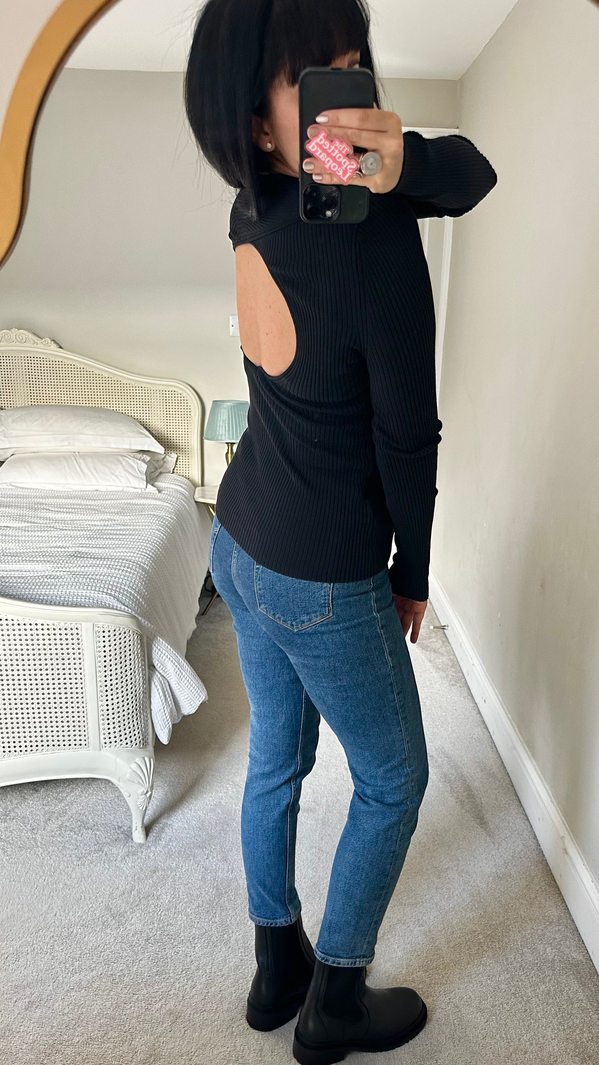Arket black ribbed stretch cut out back knitted jumper large UK 14 vgc