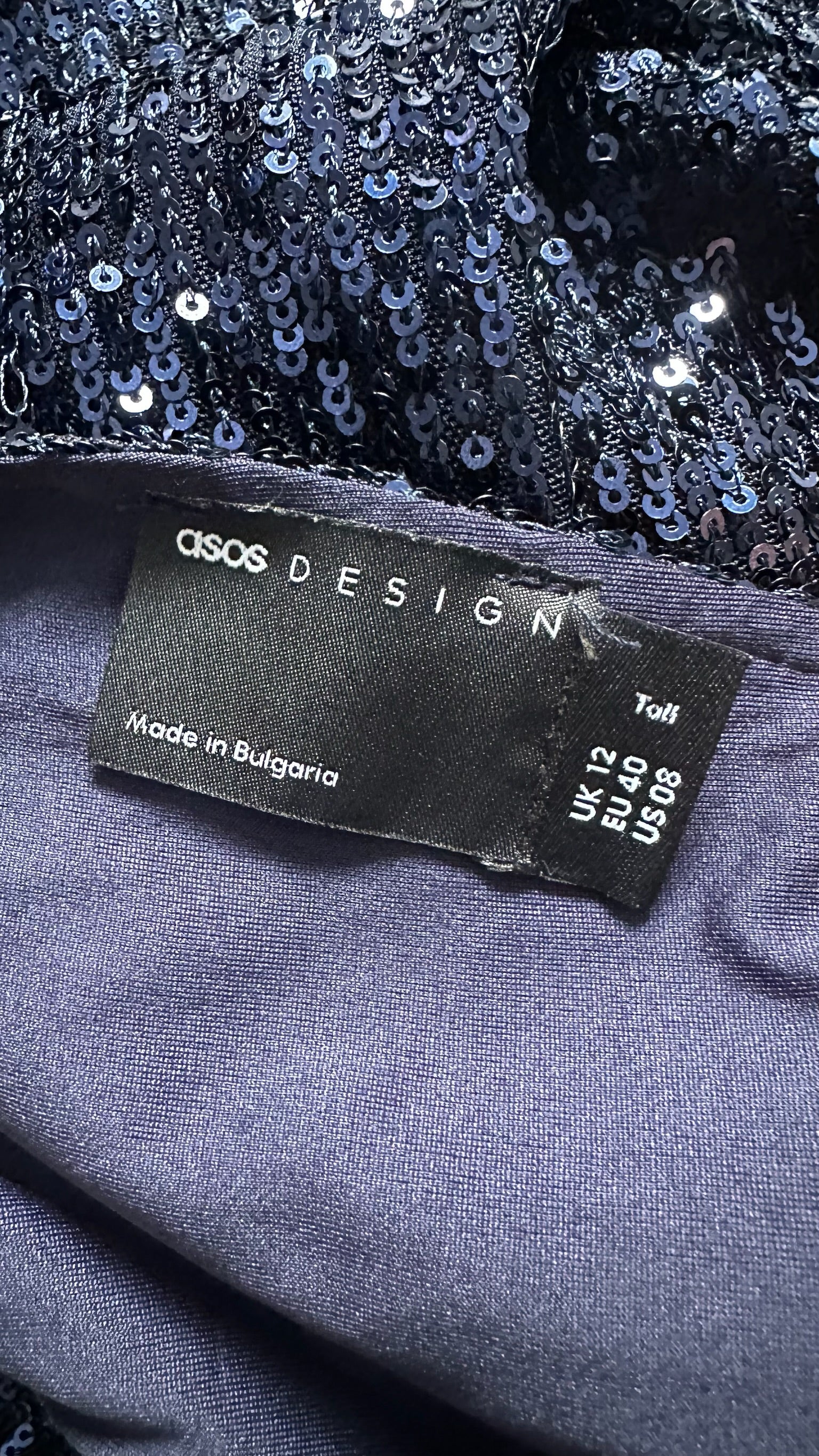 ASOS navy blue sequin low back mini party dress extra large UK 14 vgc XMS25