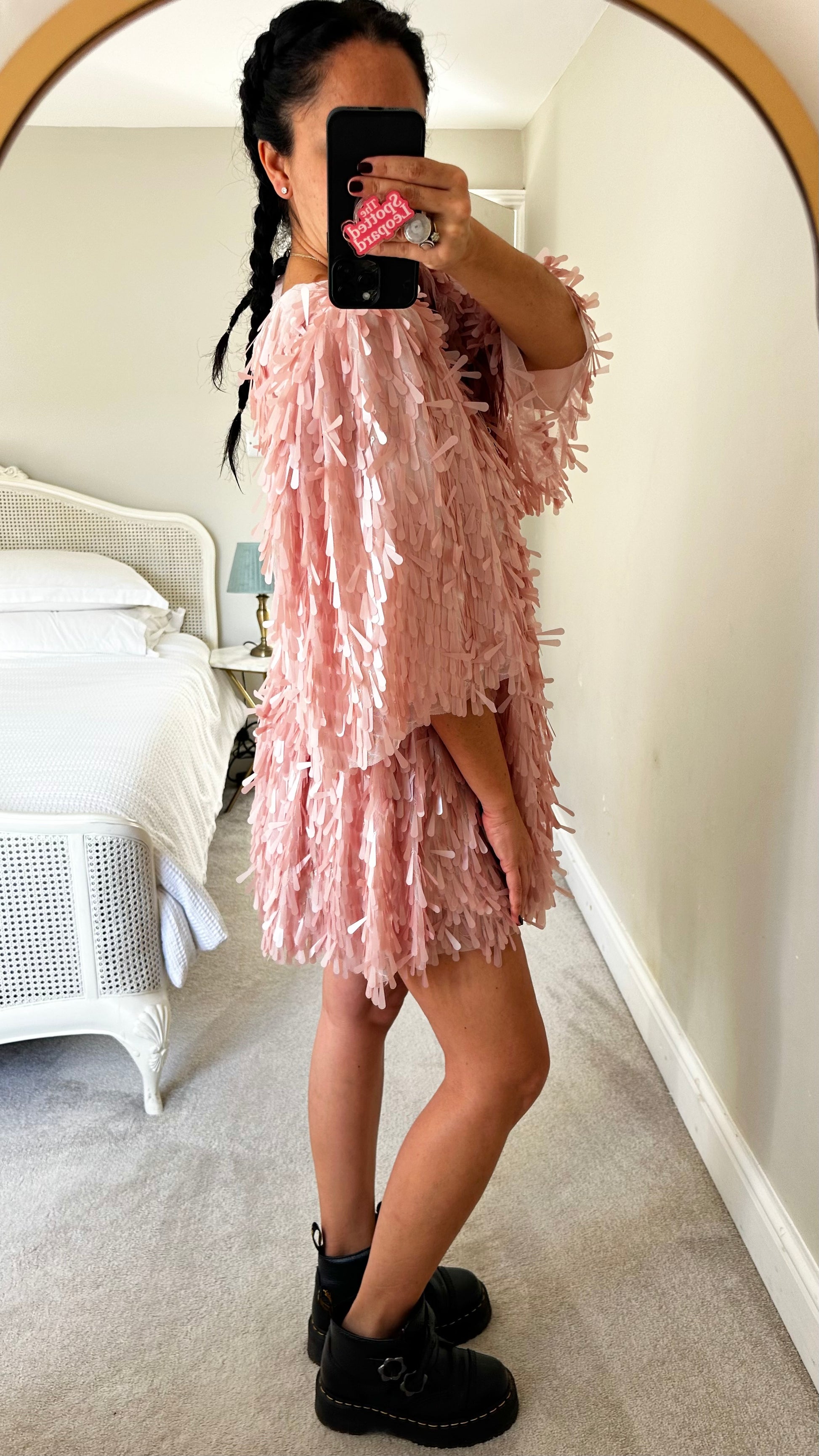 ASOS pink snowdrop sequin mini party dress small UK 8 vgc
