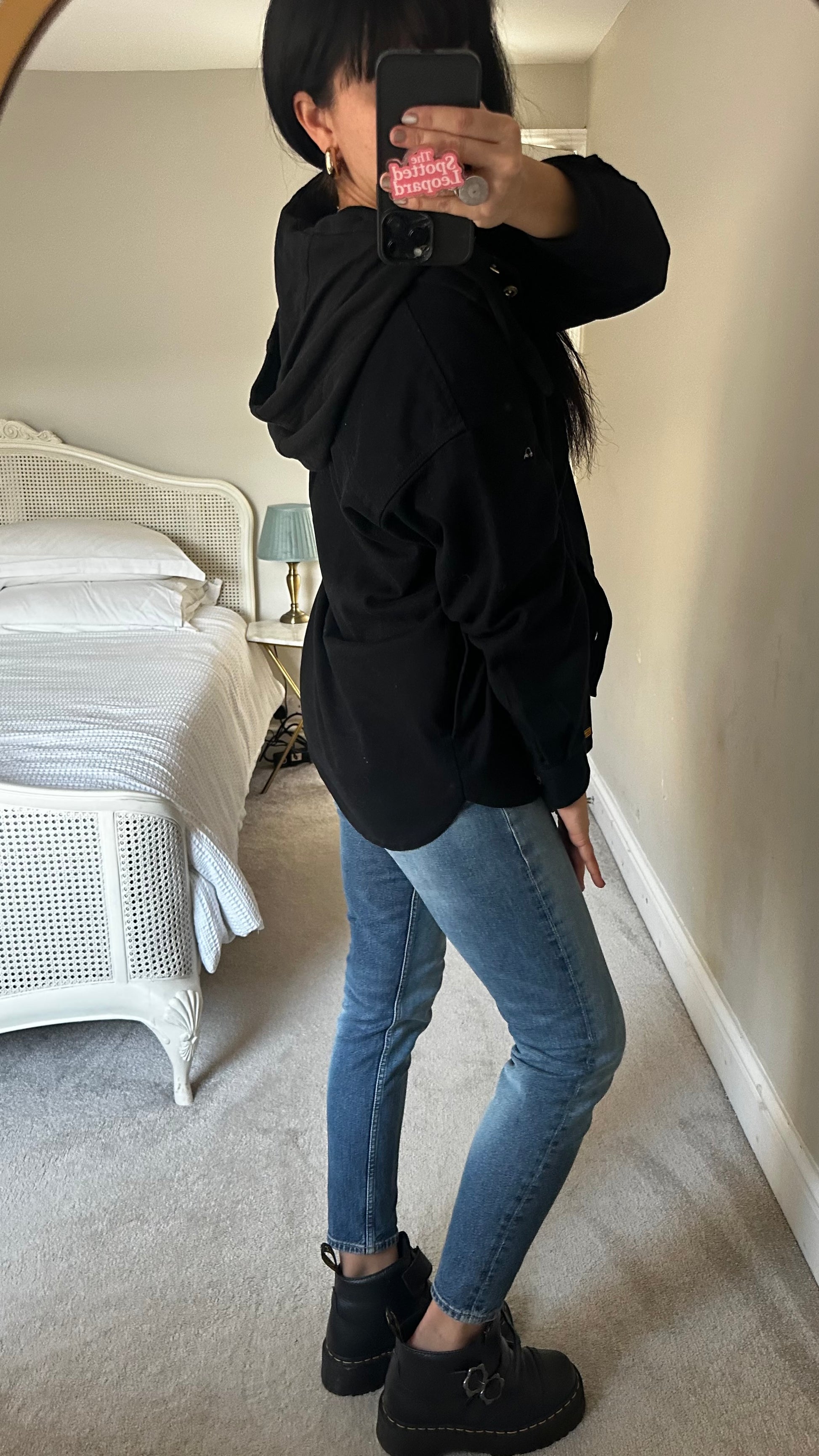 Barbour black gold hoodie jacket shacket oversized small UK 10 new bnwot