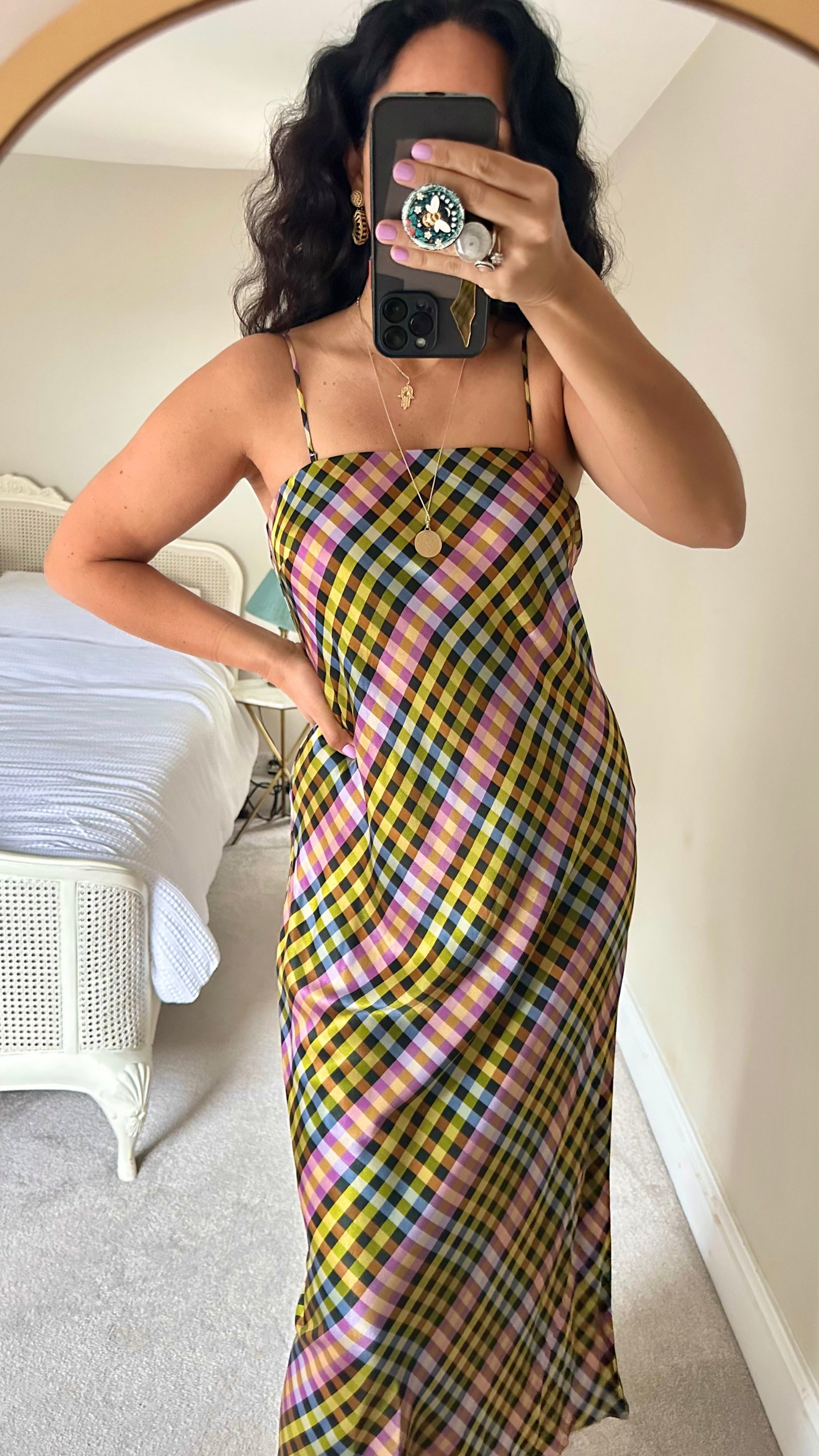 HUSH lilac green gingham check slip dress midi event maxi large UK 14 vgc