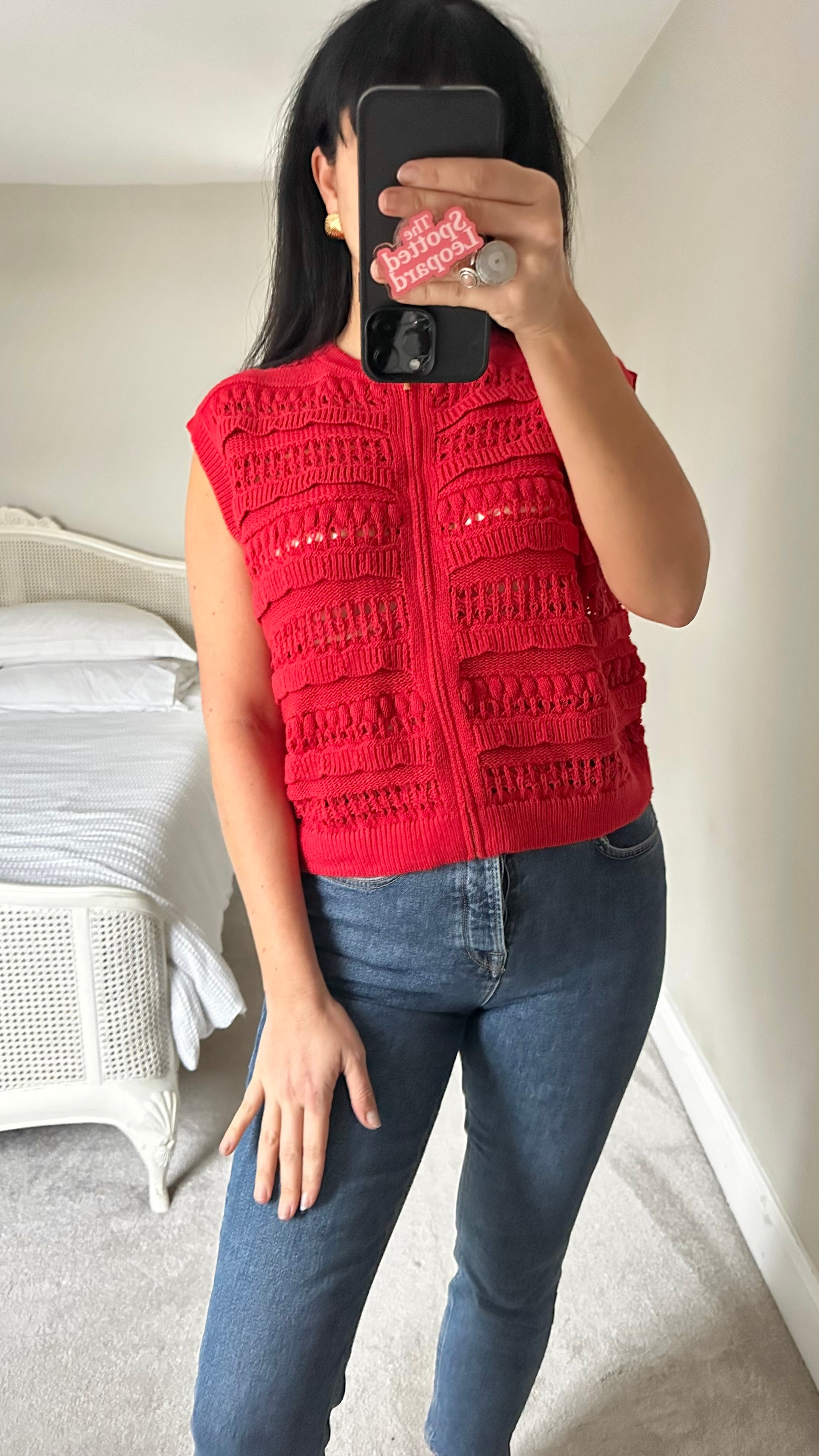 Oliver Bonas red knitted waistcoat top jumper medium UK 14 vgc