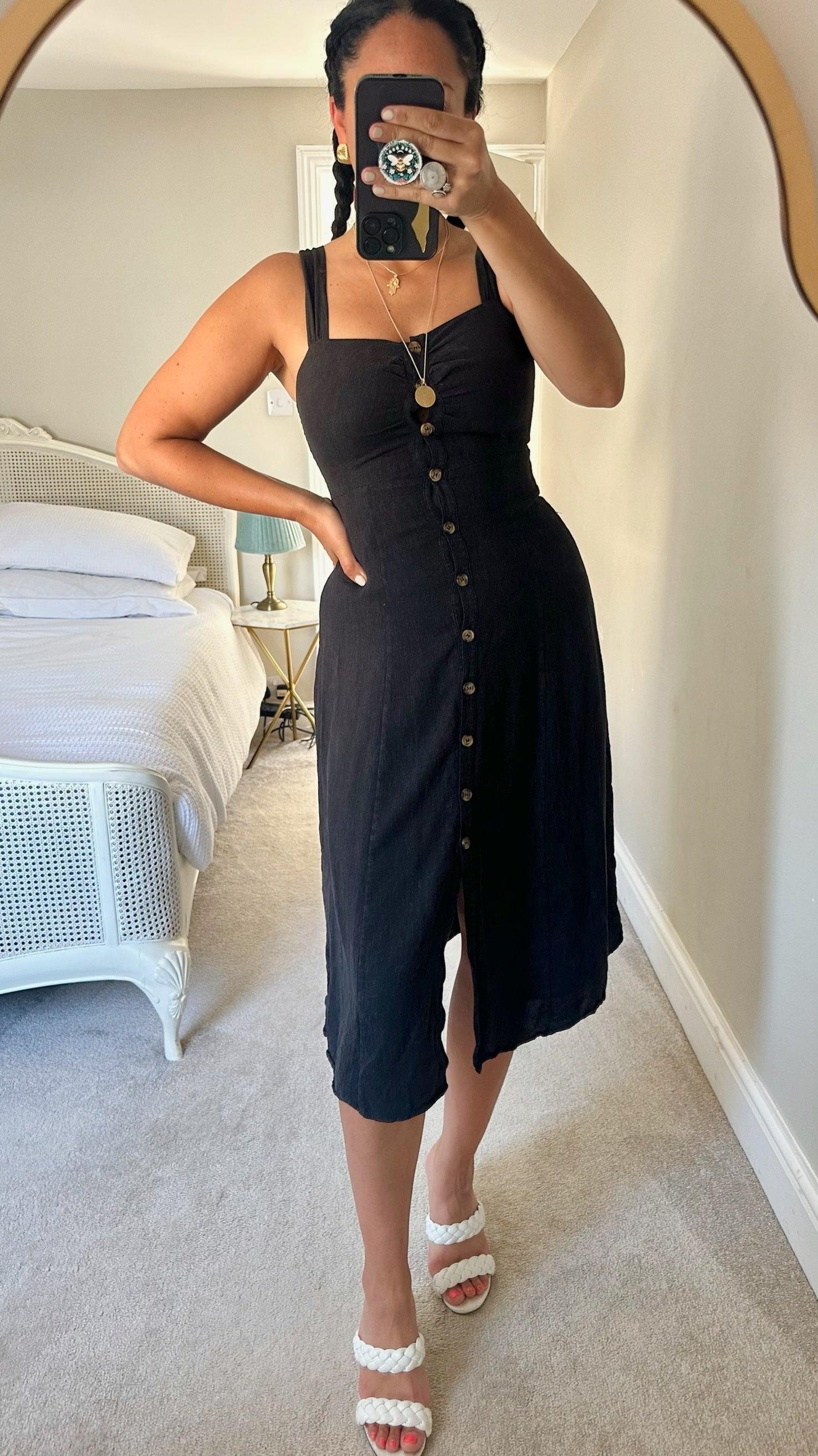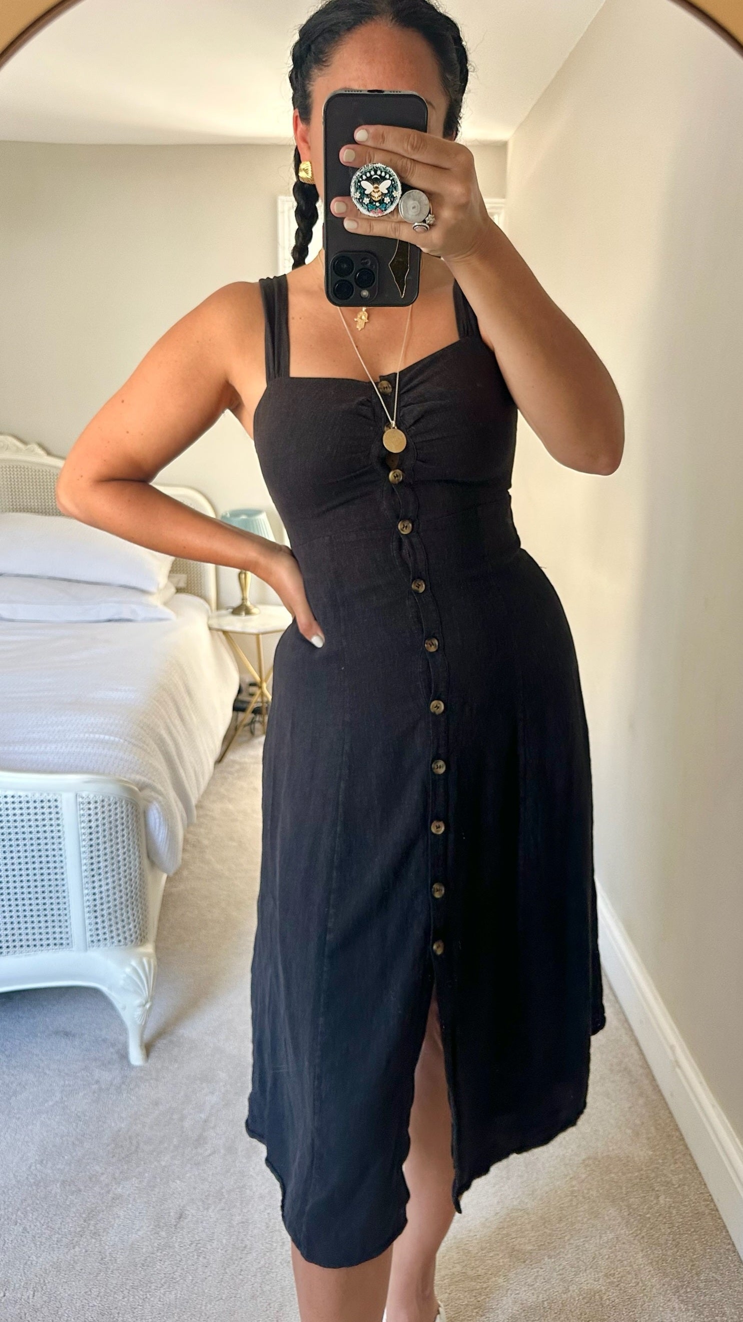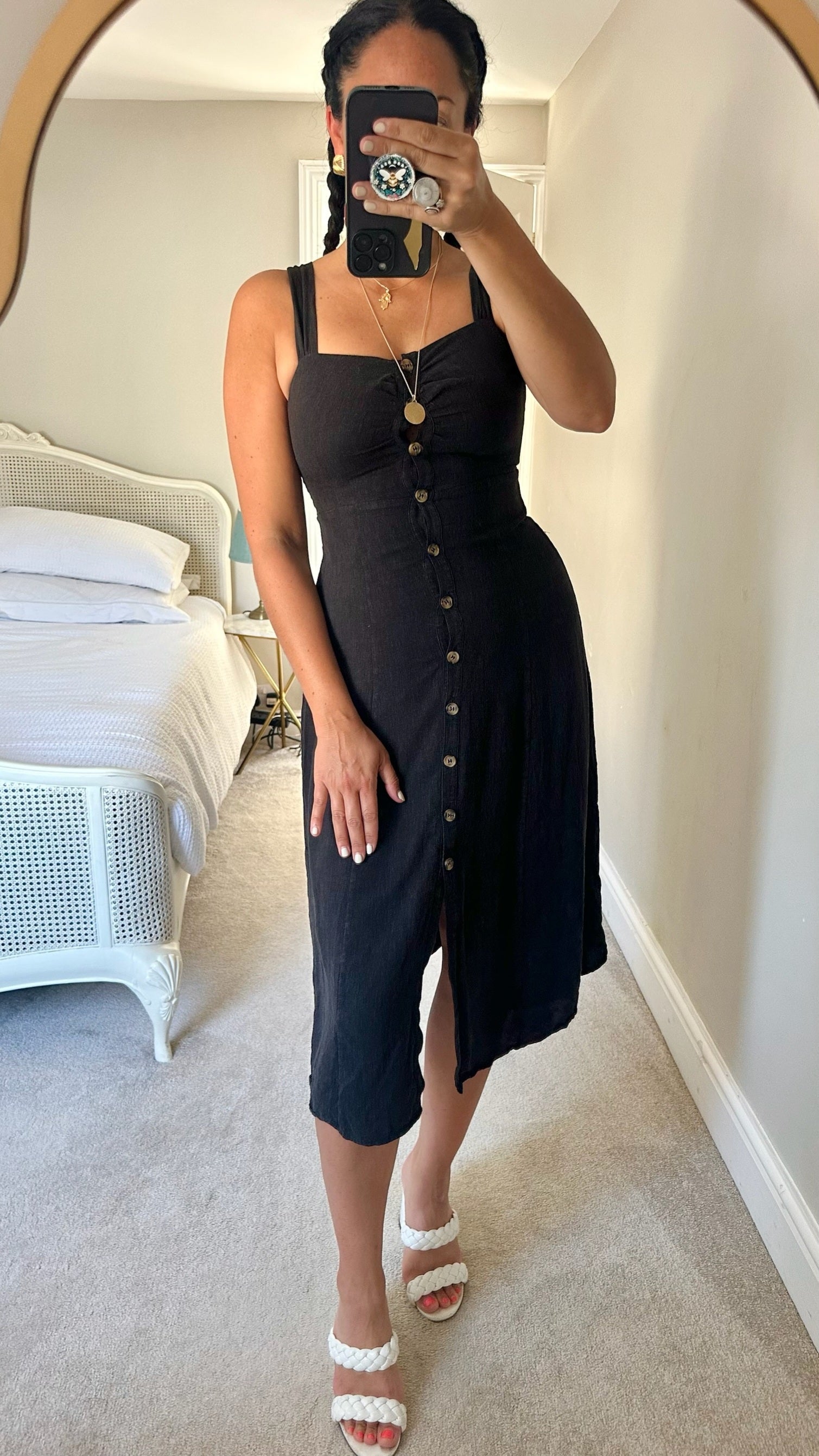 & other stories black button up linen blend dress small large UK 8 16 vgc