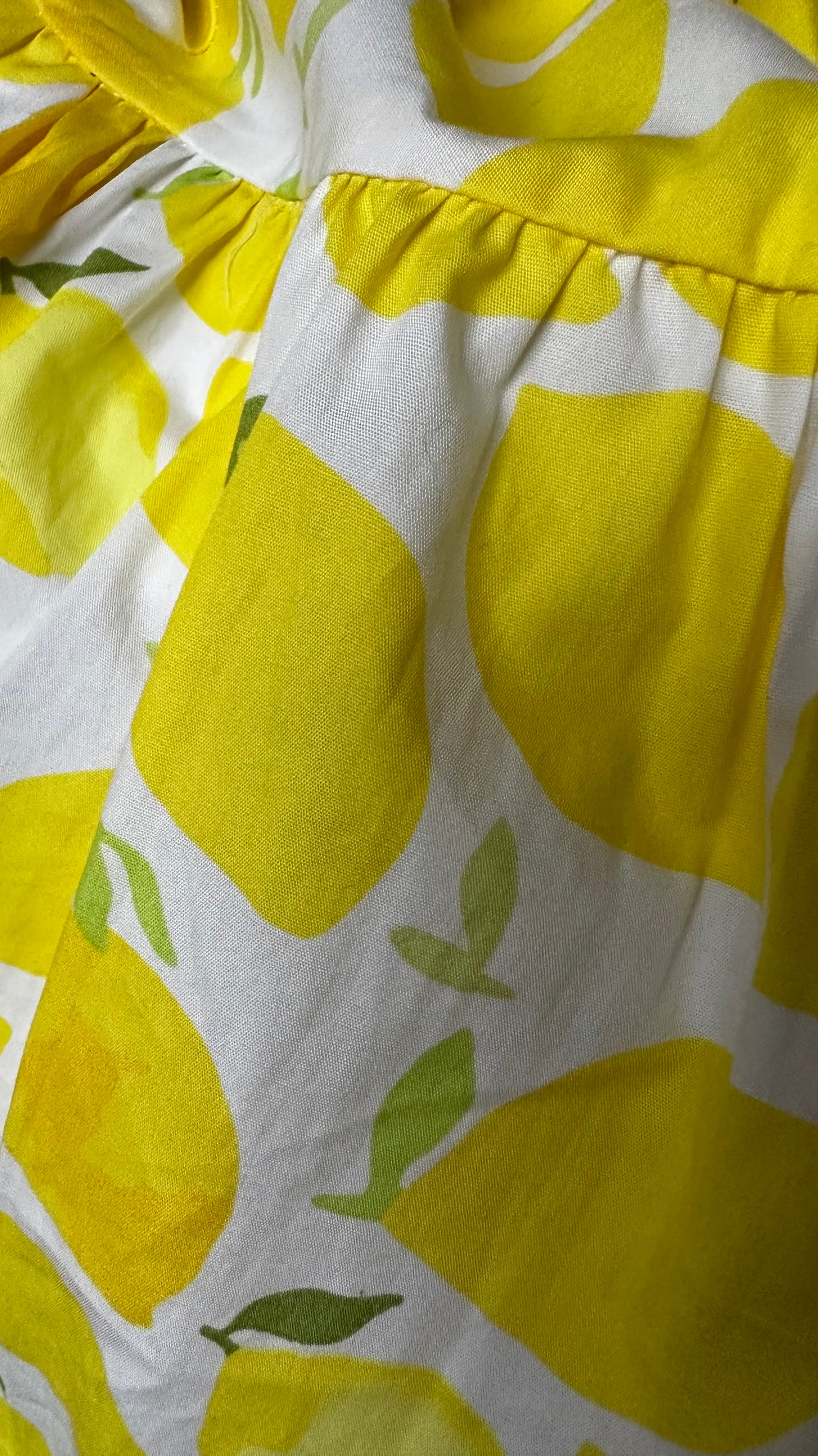 Anthropologie yellow lemon print warp cotton midi event dress extra small UK 6 new bnwt
