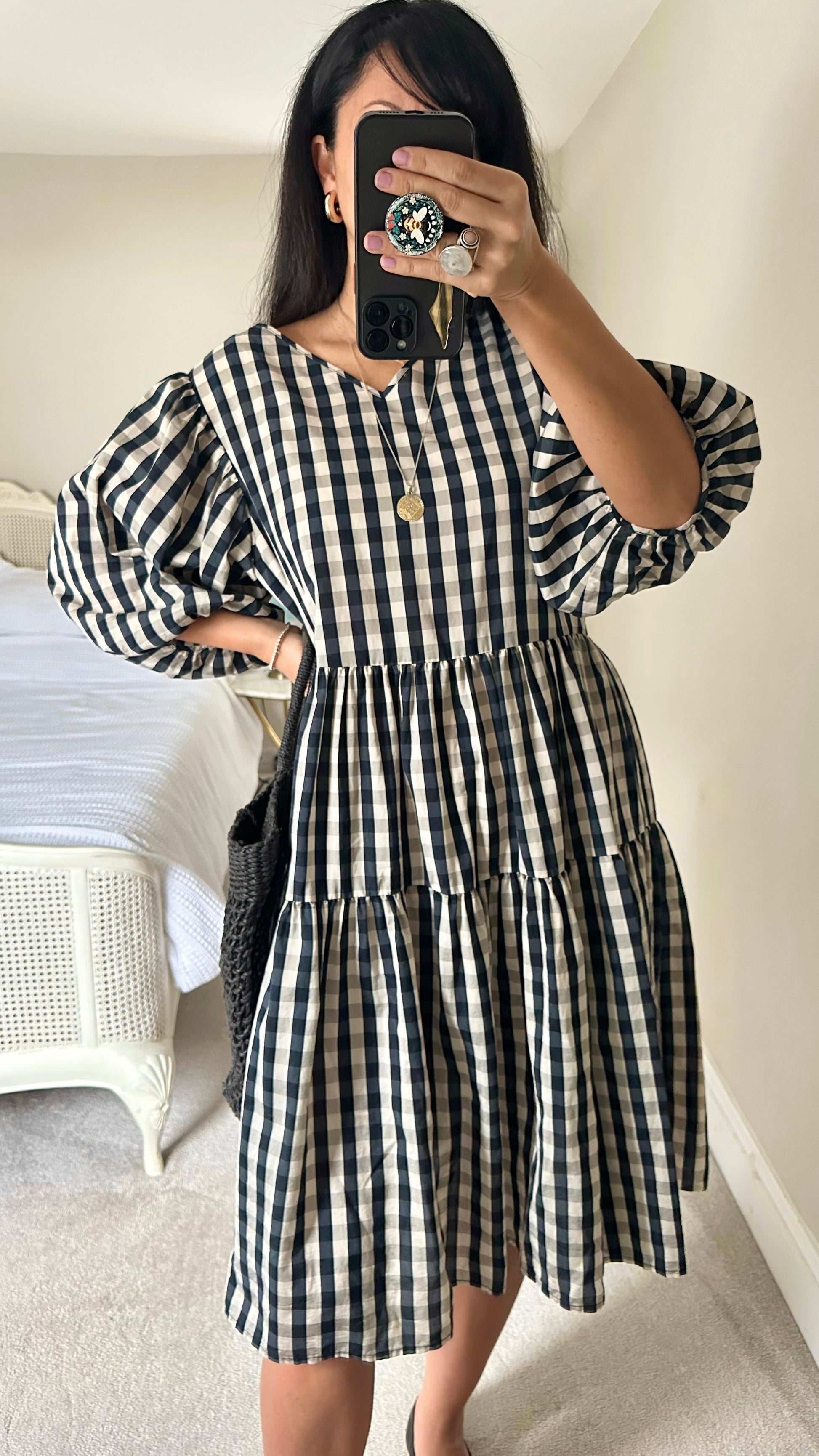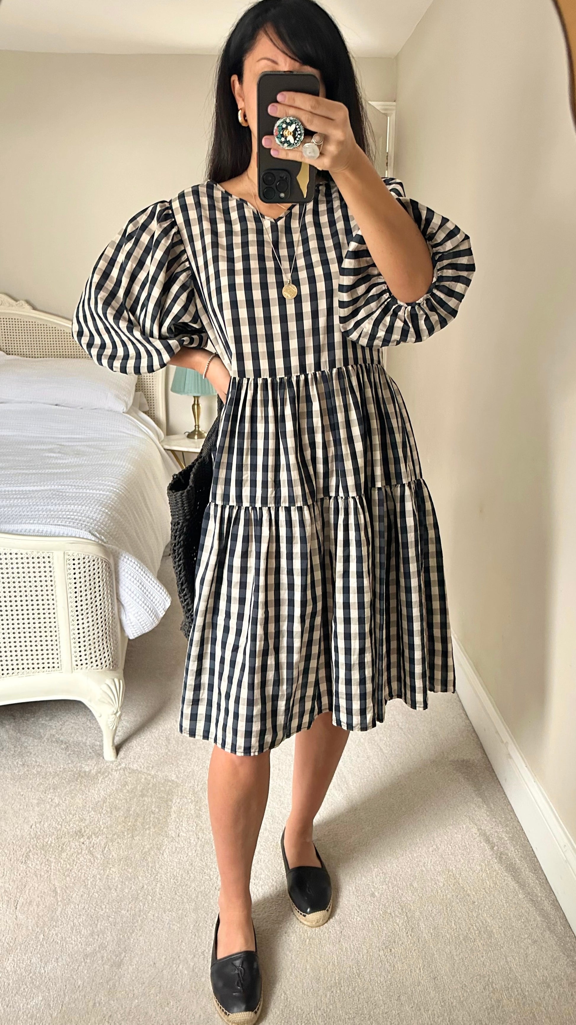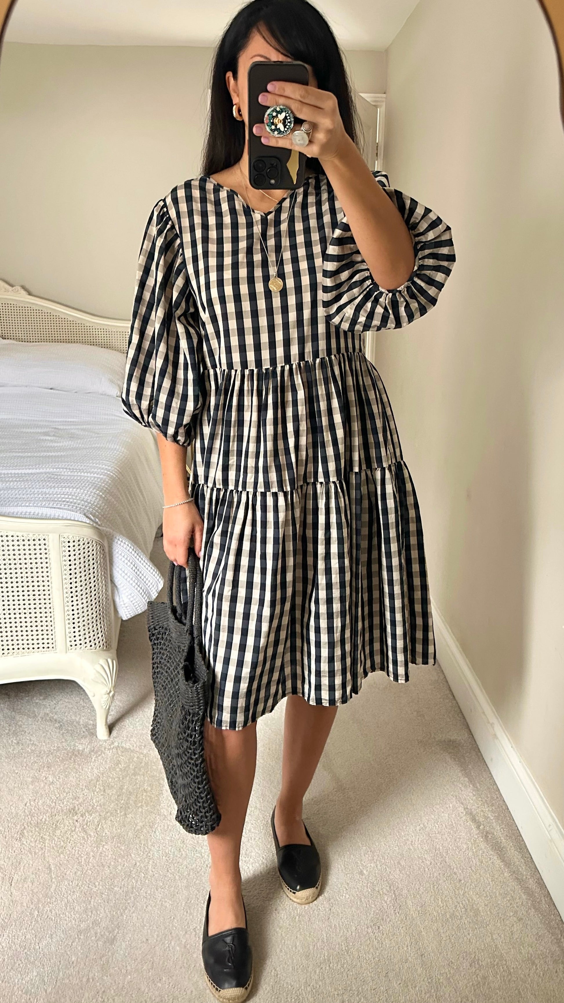 & other stories navy beige check gingham dress small medium UK 10 oversized vgc