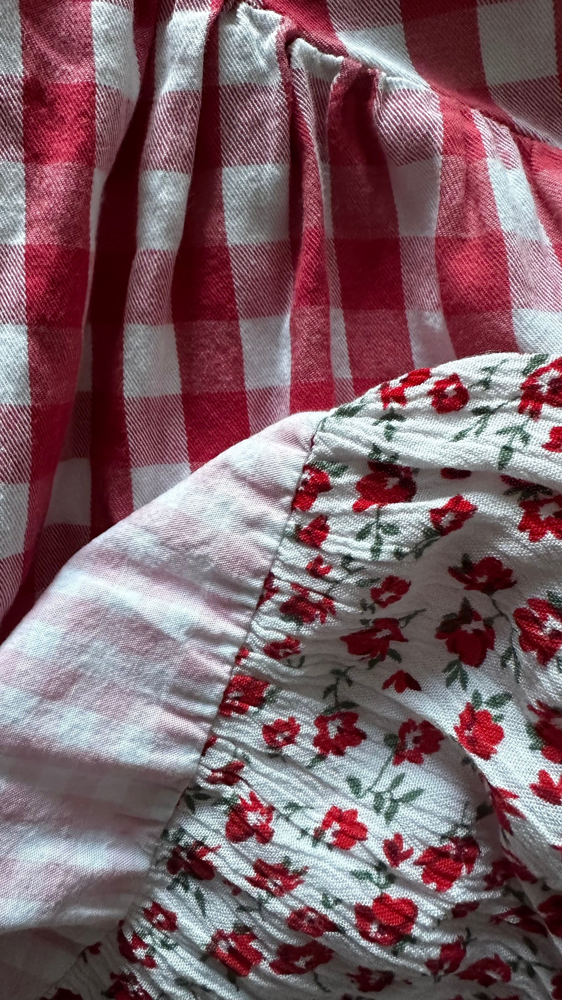 ASOS red pink floral gingham mini holiday dress medium UK 12 vgc