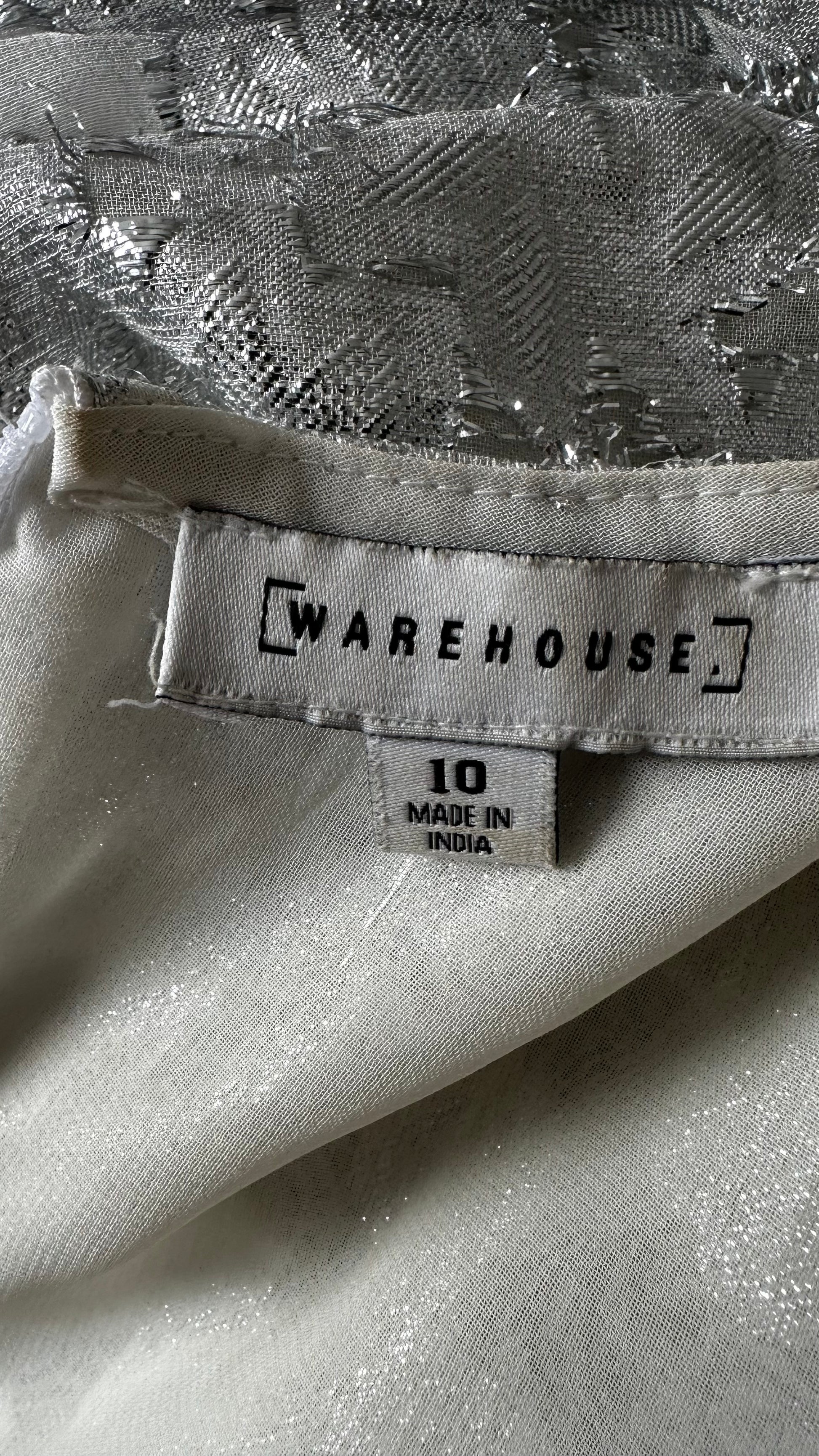 Warehouse silver metallic maxi long dress small UK 10 vgc even wedding