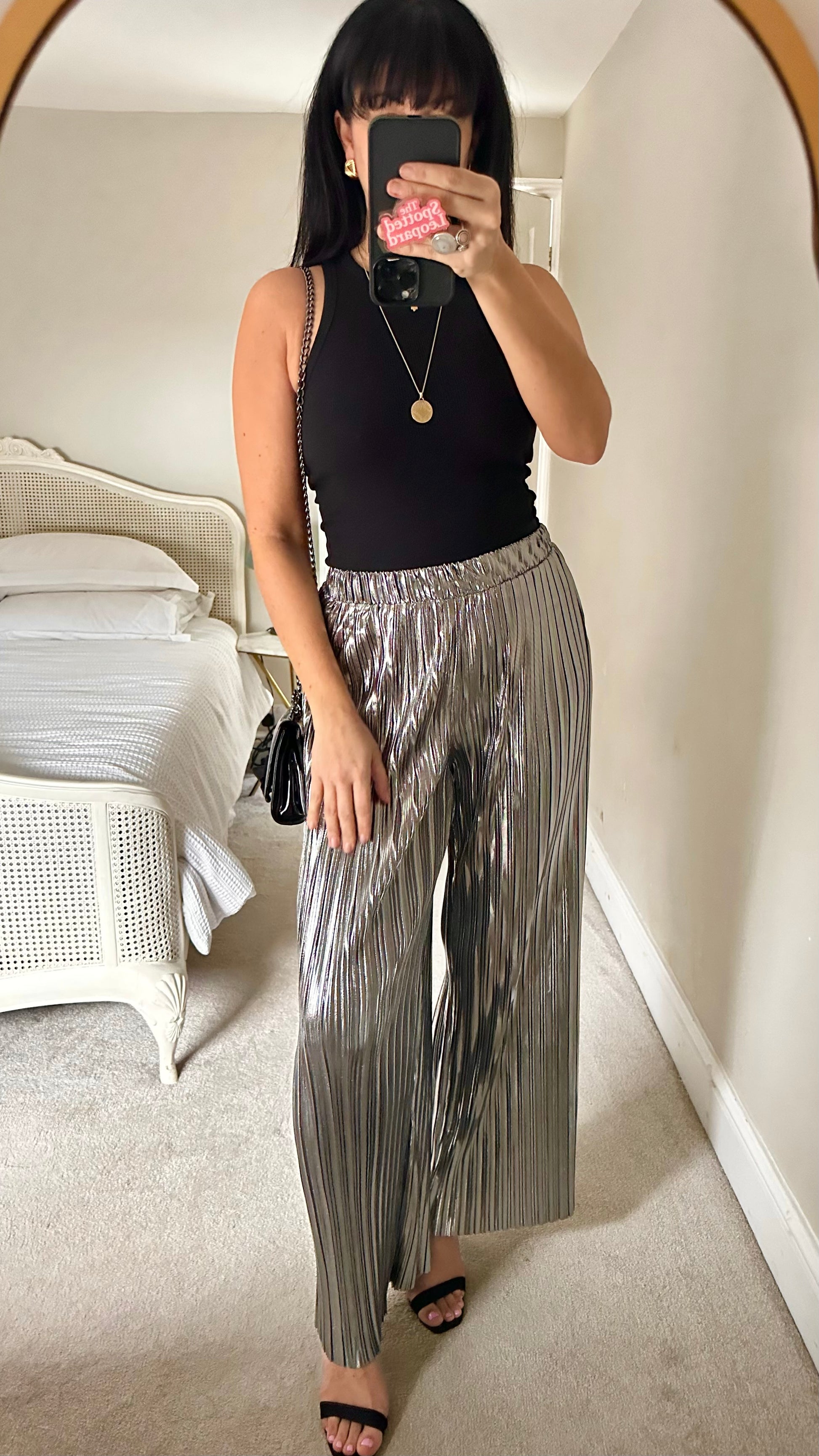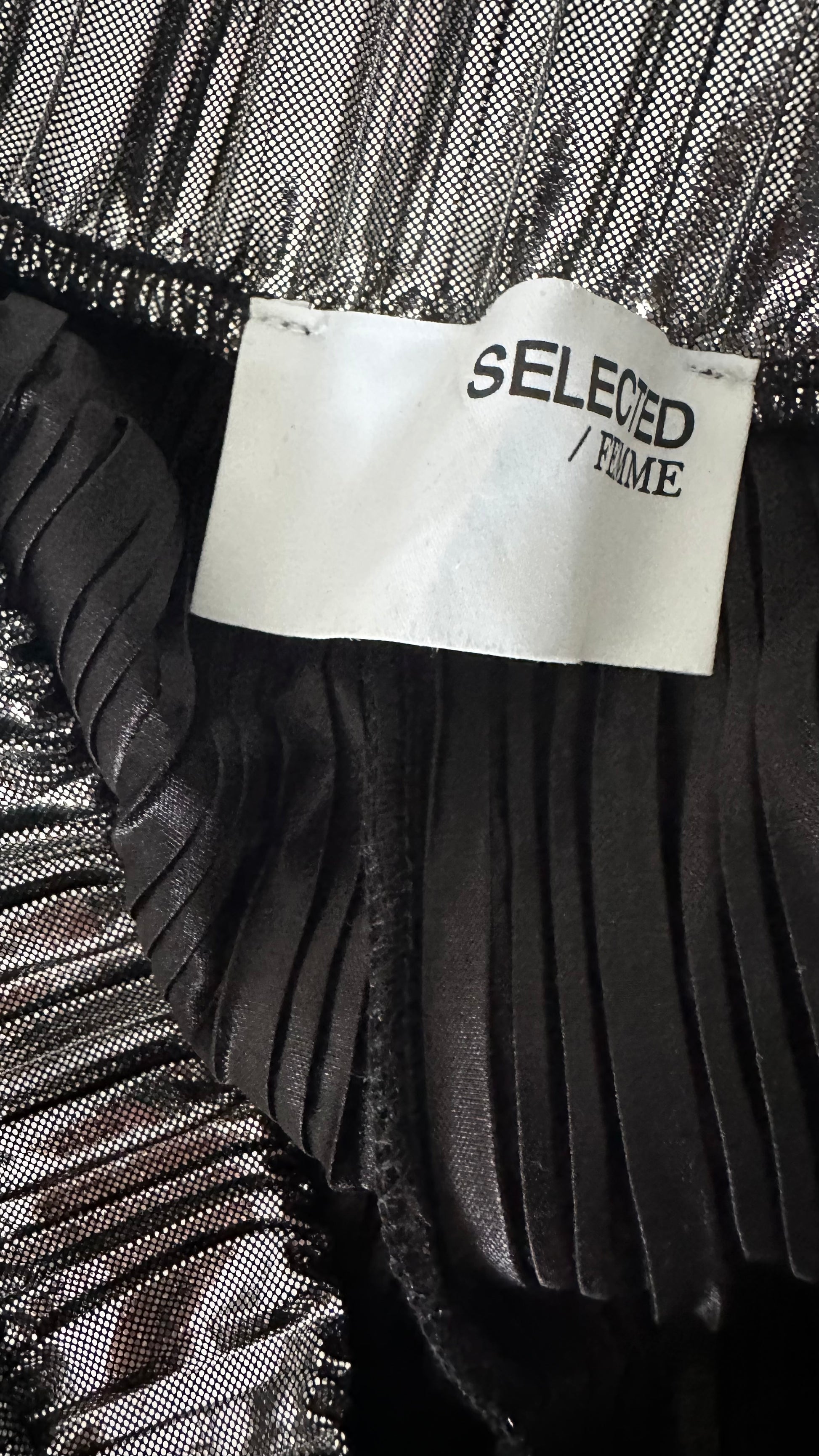 Selected Femme @ Anthropologie silver plissé metallic palazzo trousers large UK 12 14 vgc