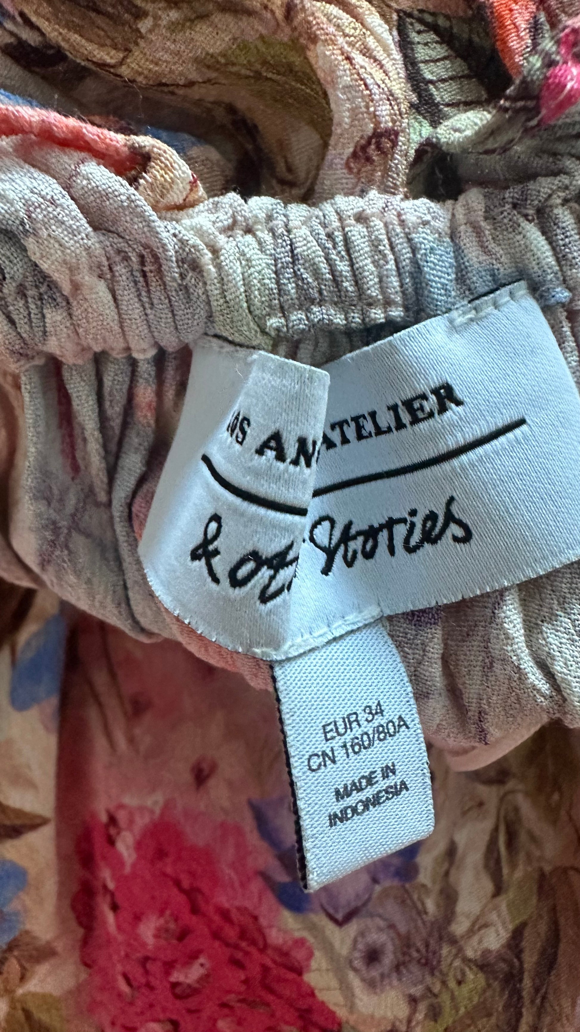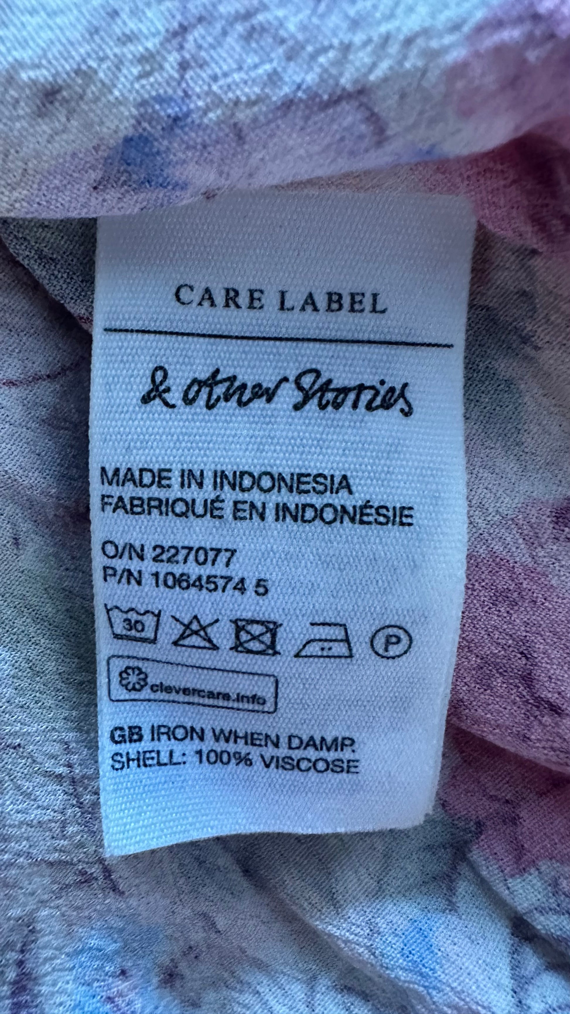 & other stories pink blue beige floral side split midi long dress extra small UK 6 vgc