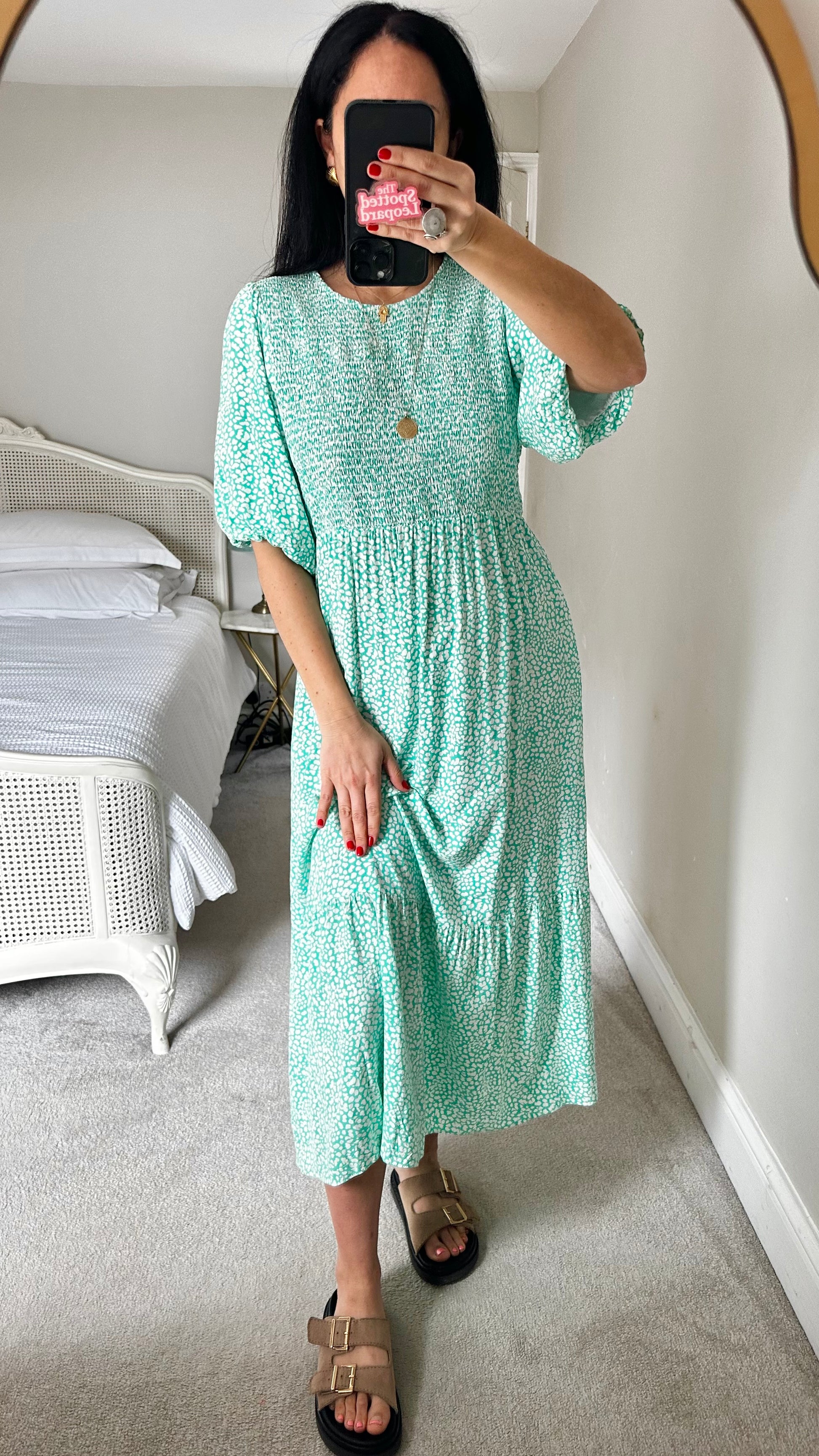 Nobody’s Child mint green white polka dot midi long dress small medium UK 10 14