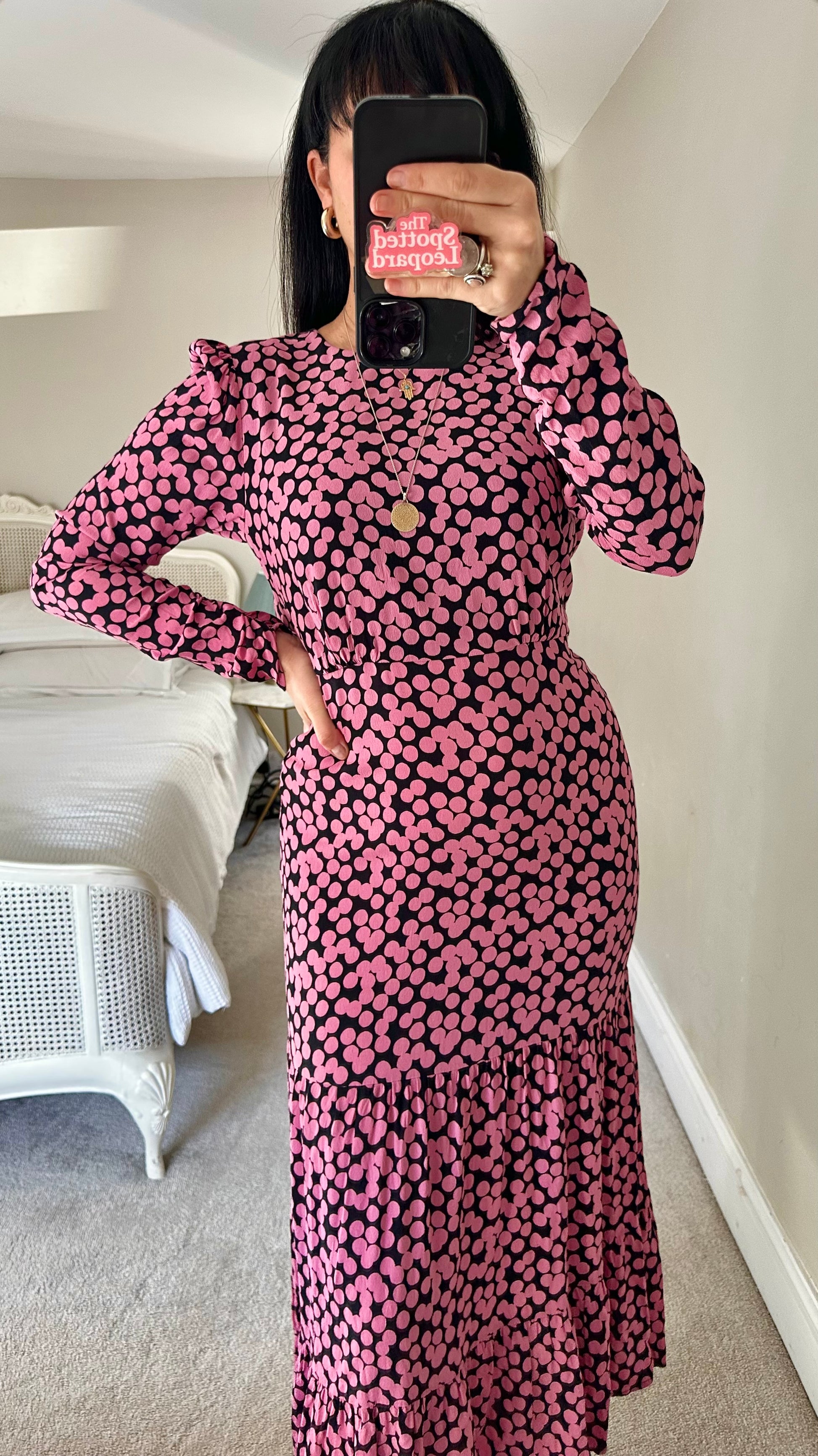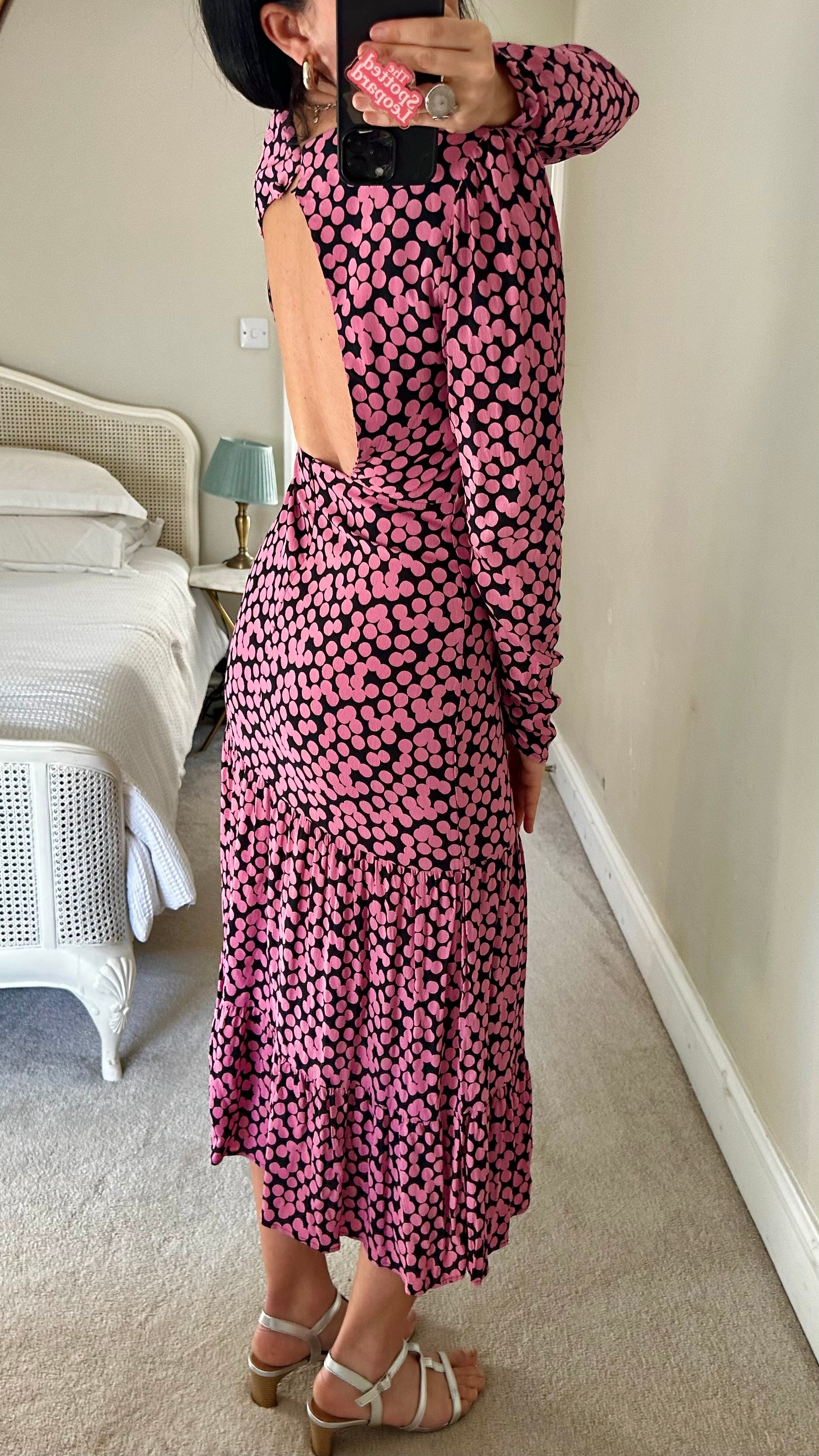 Mango navy blue pink polka dot event dress medium UK 10-12 vgc long backlesss