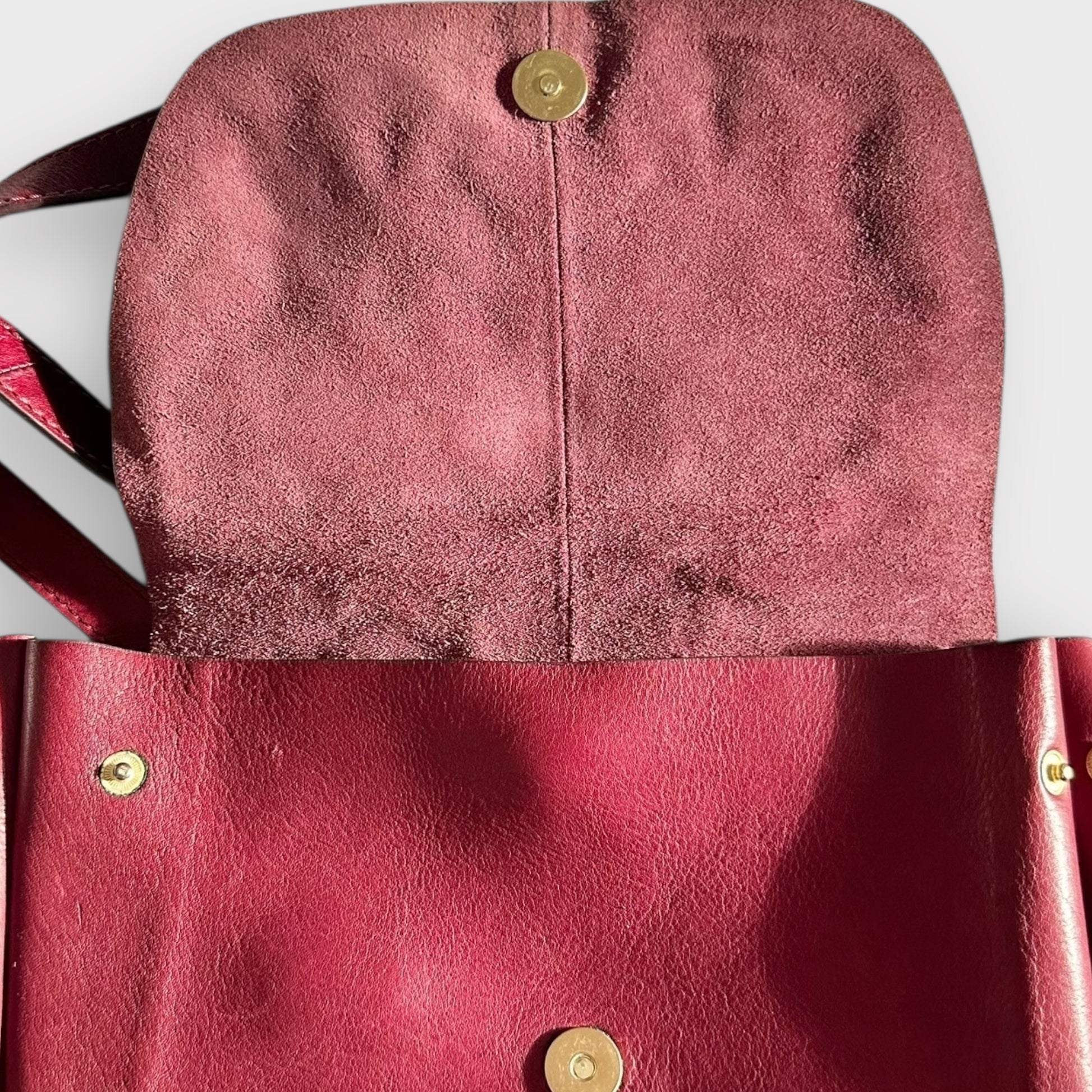 And/or John Lewis burgundy red real leather satchel handbag bag studded vgc
