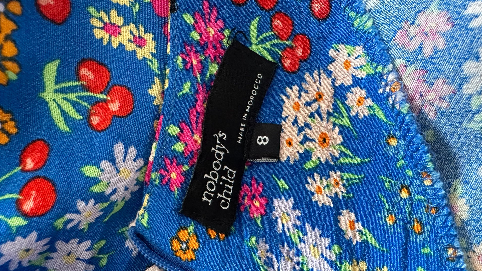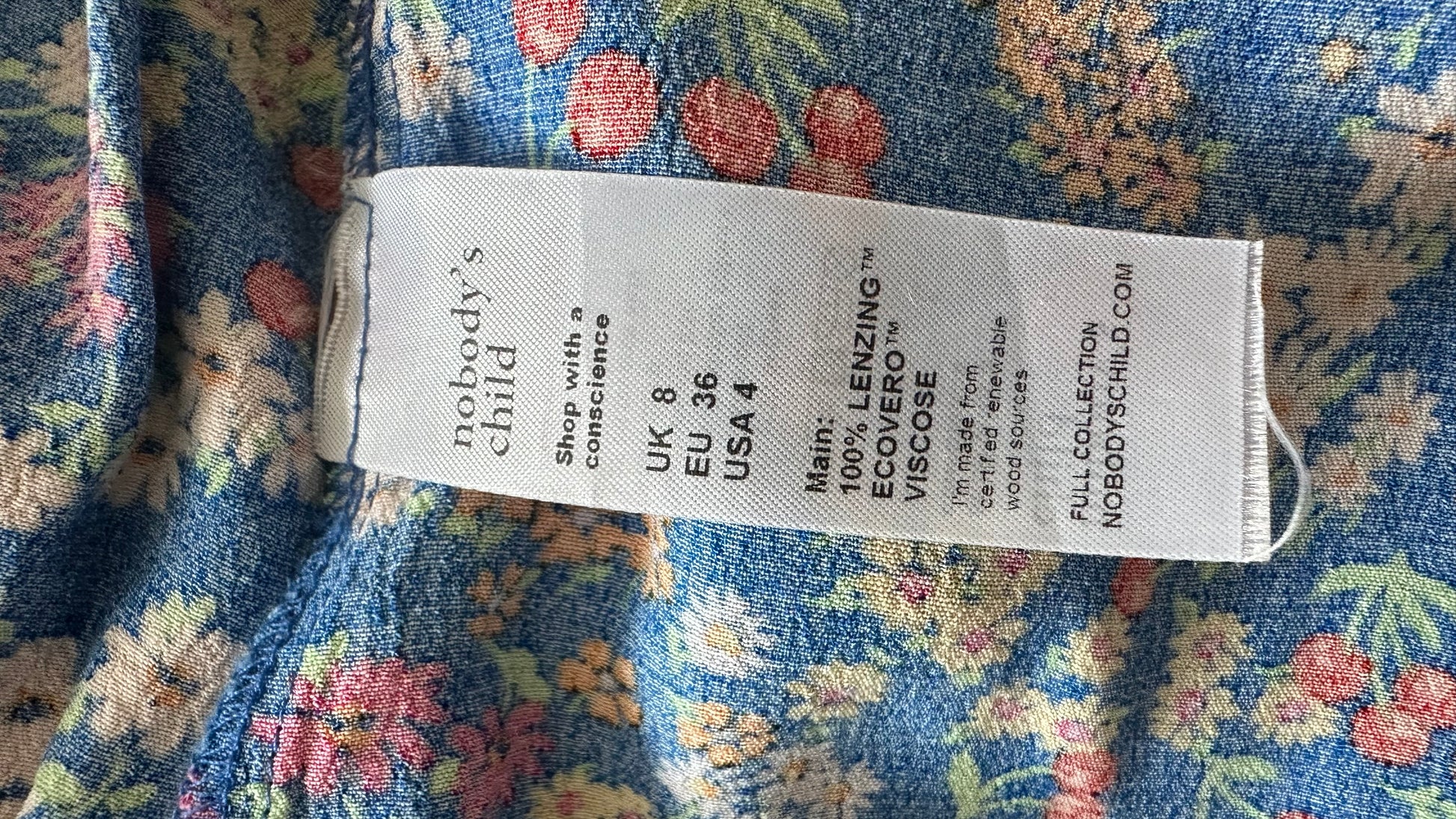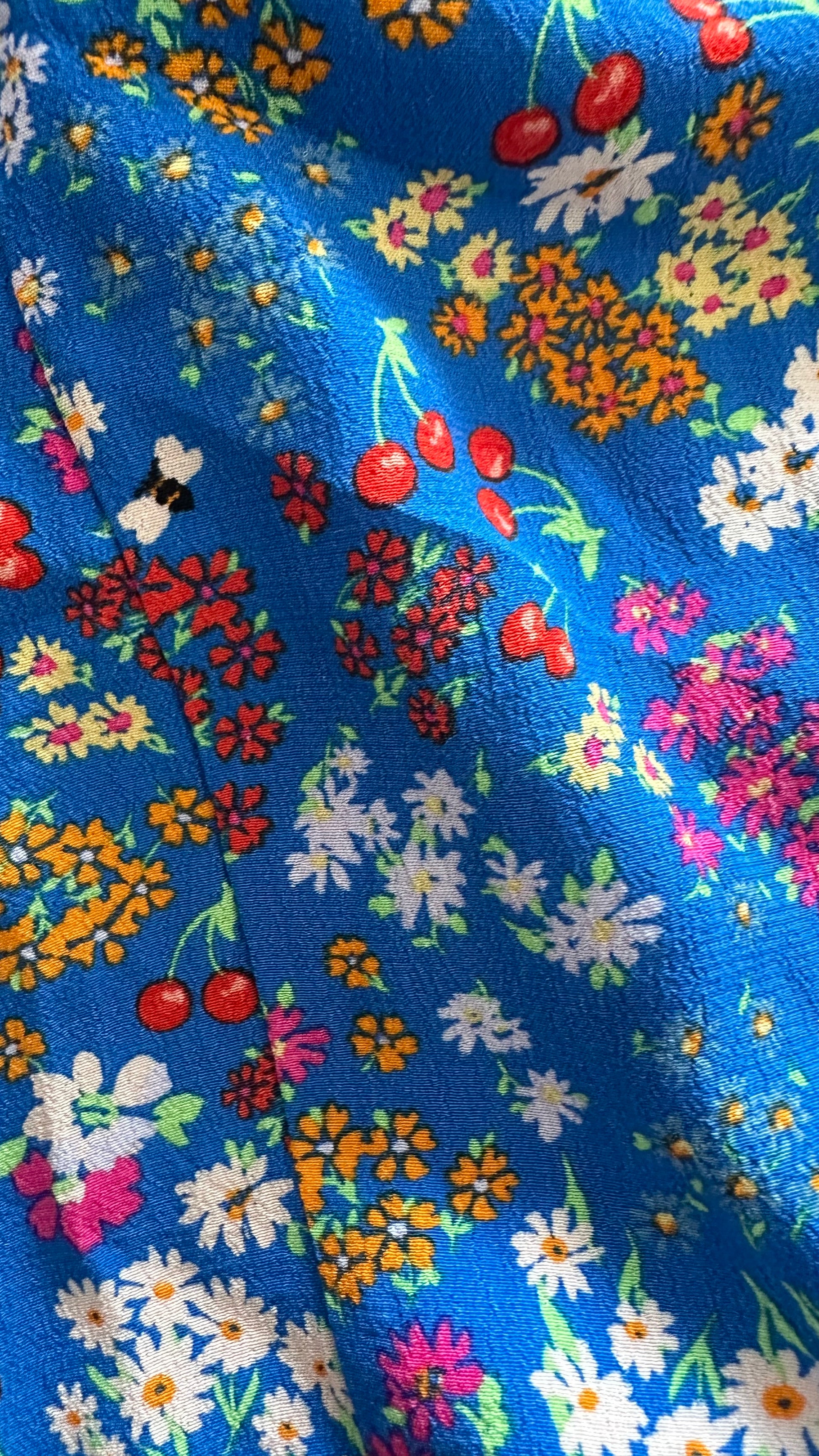 Nobody’s Child bright blue bee floral midi dress small medium UK 10 14 vgc
