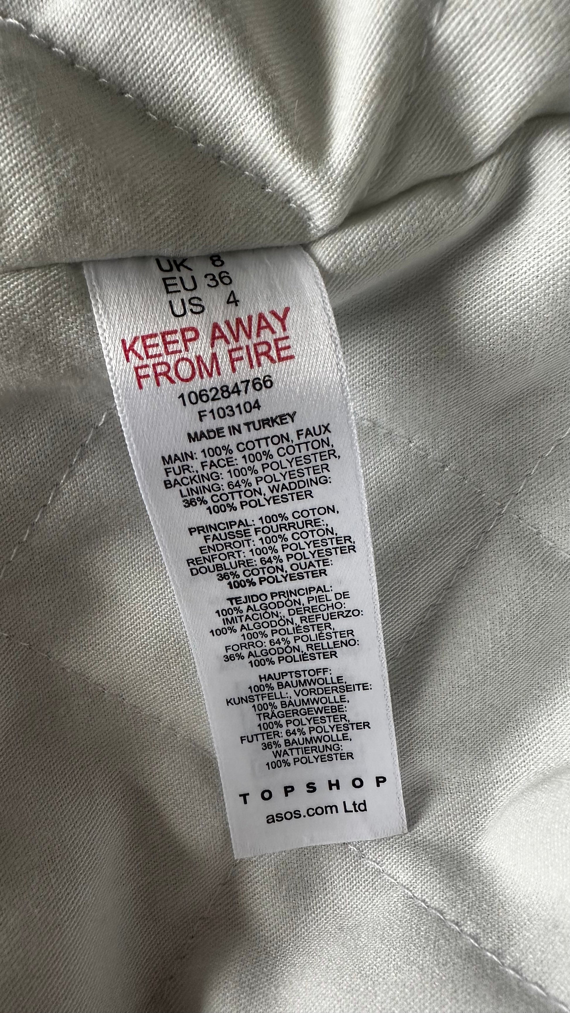 Topshop blue denim faux shearling jacket quilted coat small UK 8-10 oversized vgc