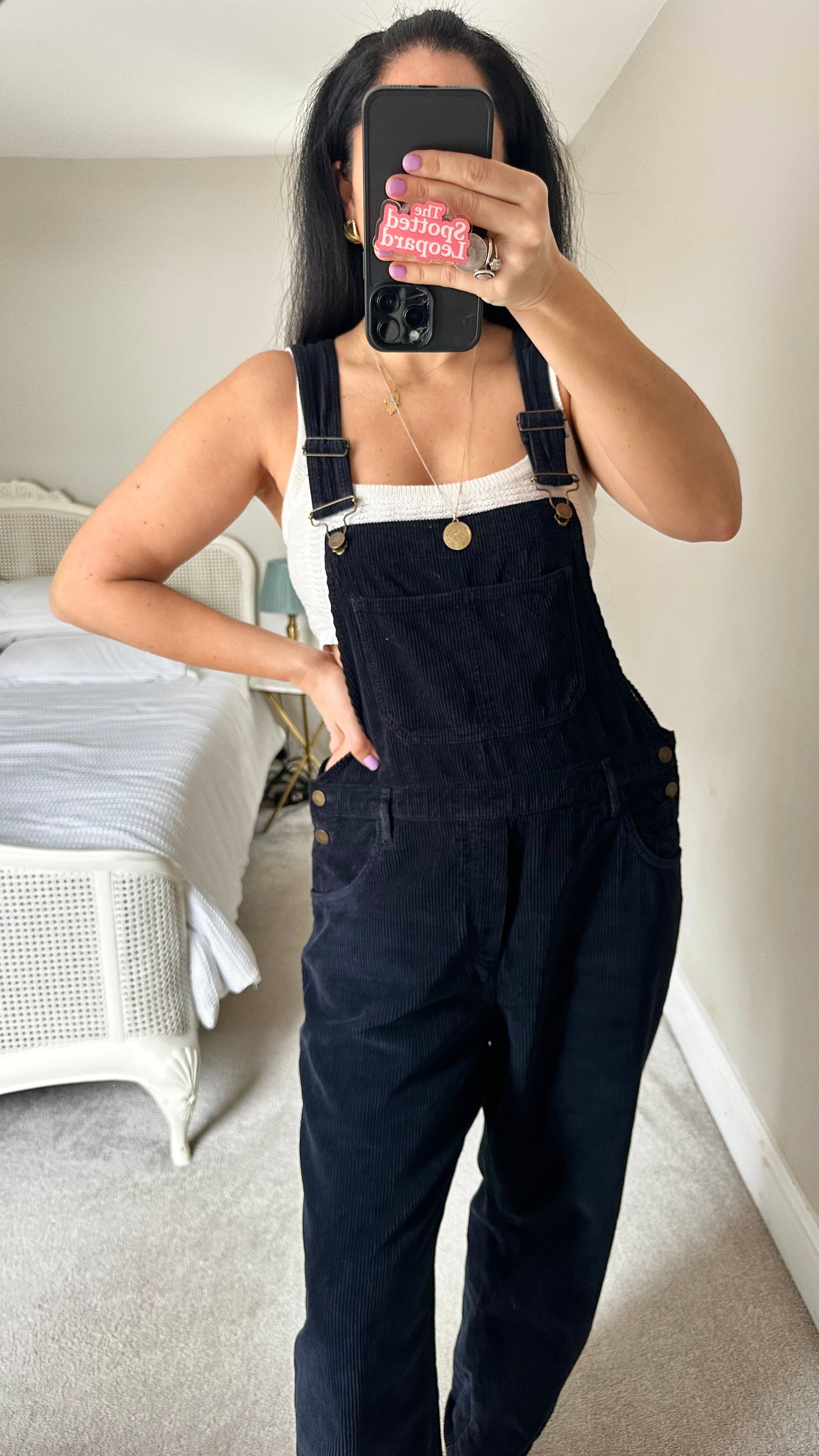 HUSH navy blue black corduroy dungarees jumpsuit trousers medium UK 14 vgc