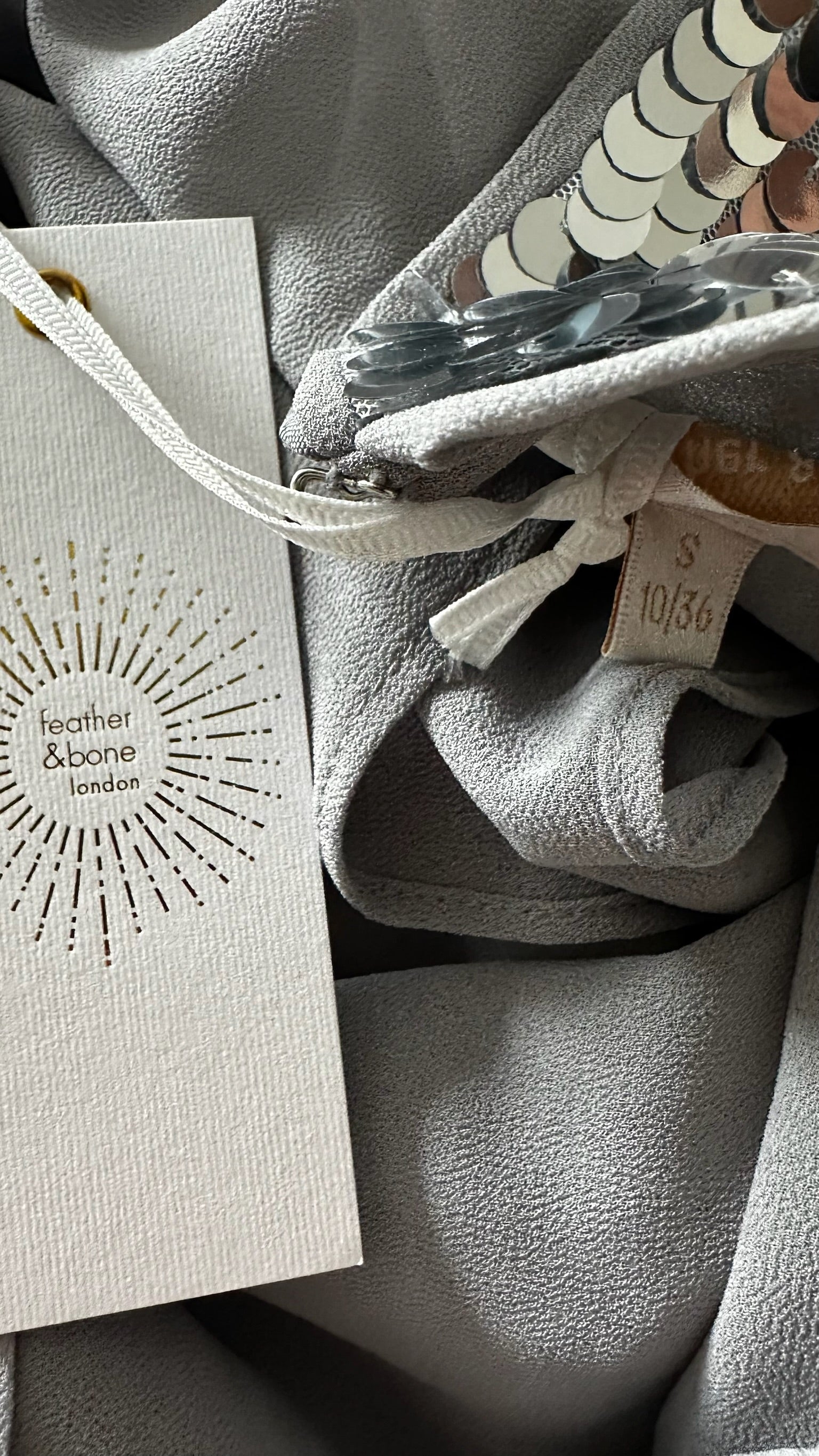 Feather & bone @ Anthropologie silver sequin event mini skirt medium UK 10 vgc XMS25