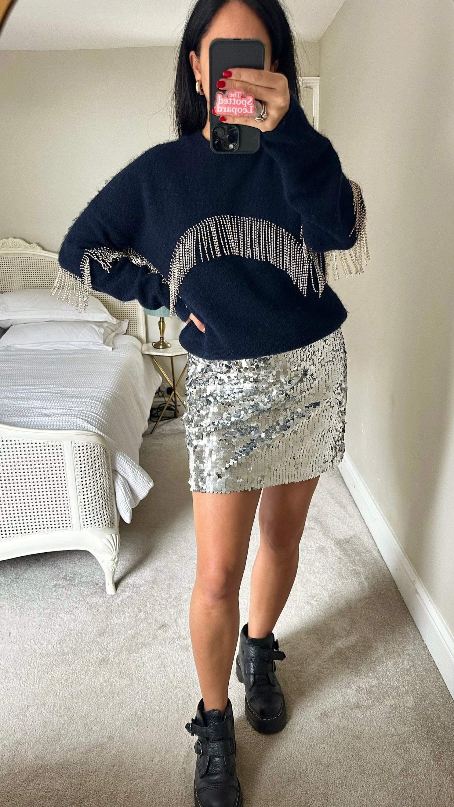 Stunning silver sequin mini skirt ❤️ in new condition, jumper also listed ❤️
