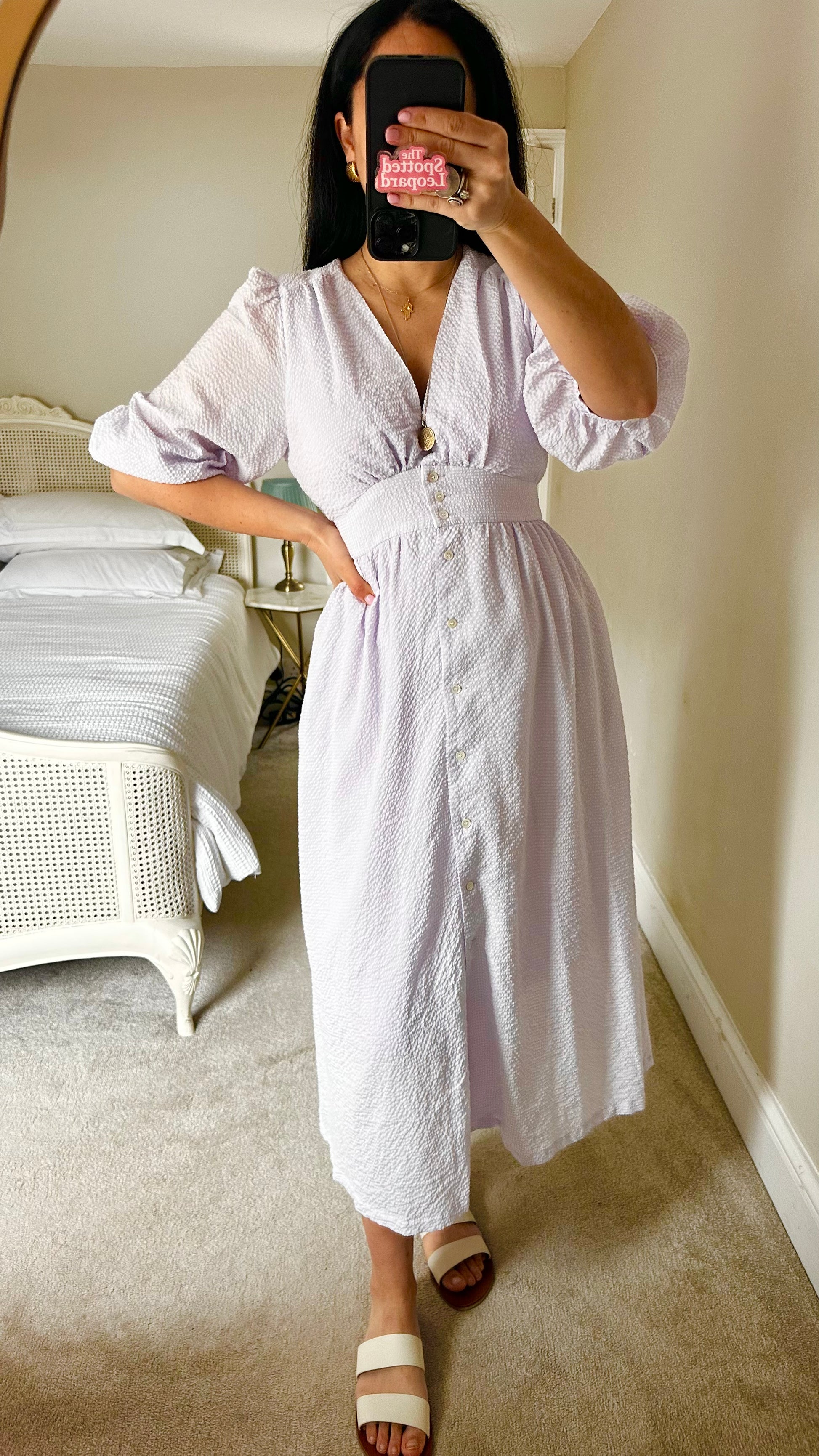 FRNCH lilac white button up dress long midi event extra large UK 16 vgc
