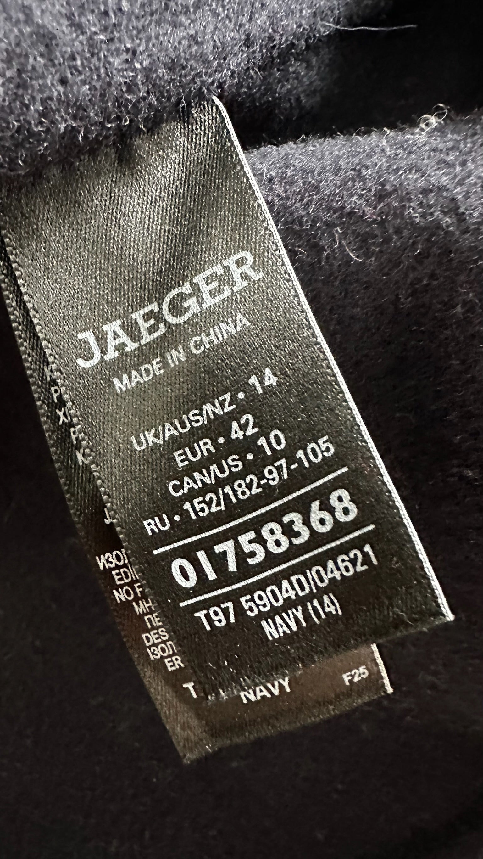 Jaeger navy blue wool blend long line coat extra large UK 14 vgc