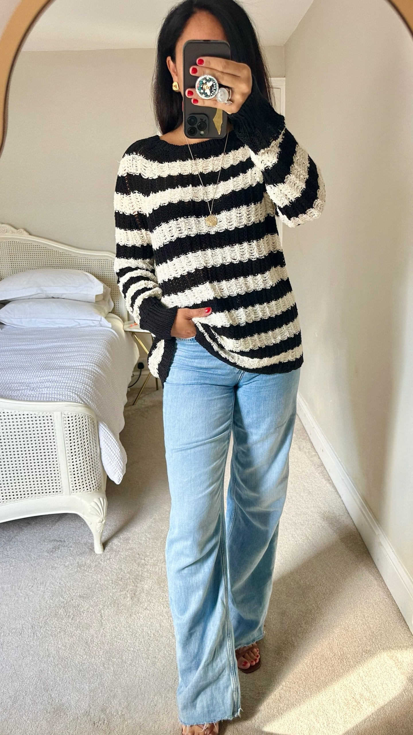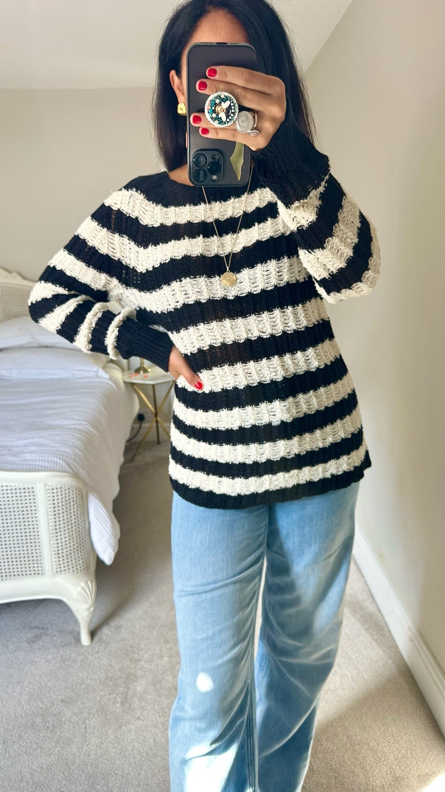 elegant black and cream linen blend jumper ❤️ in as new condition