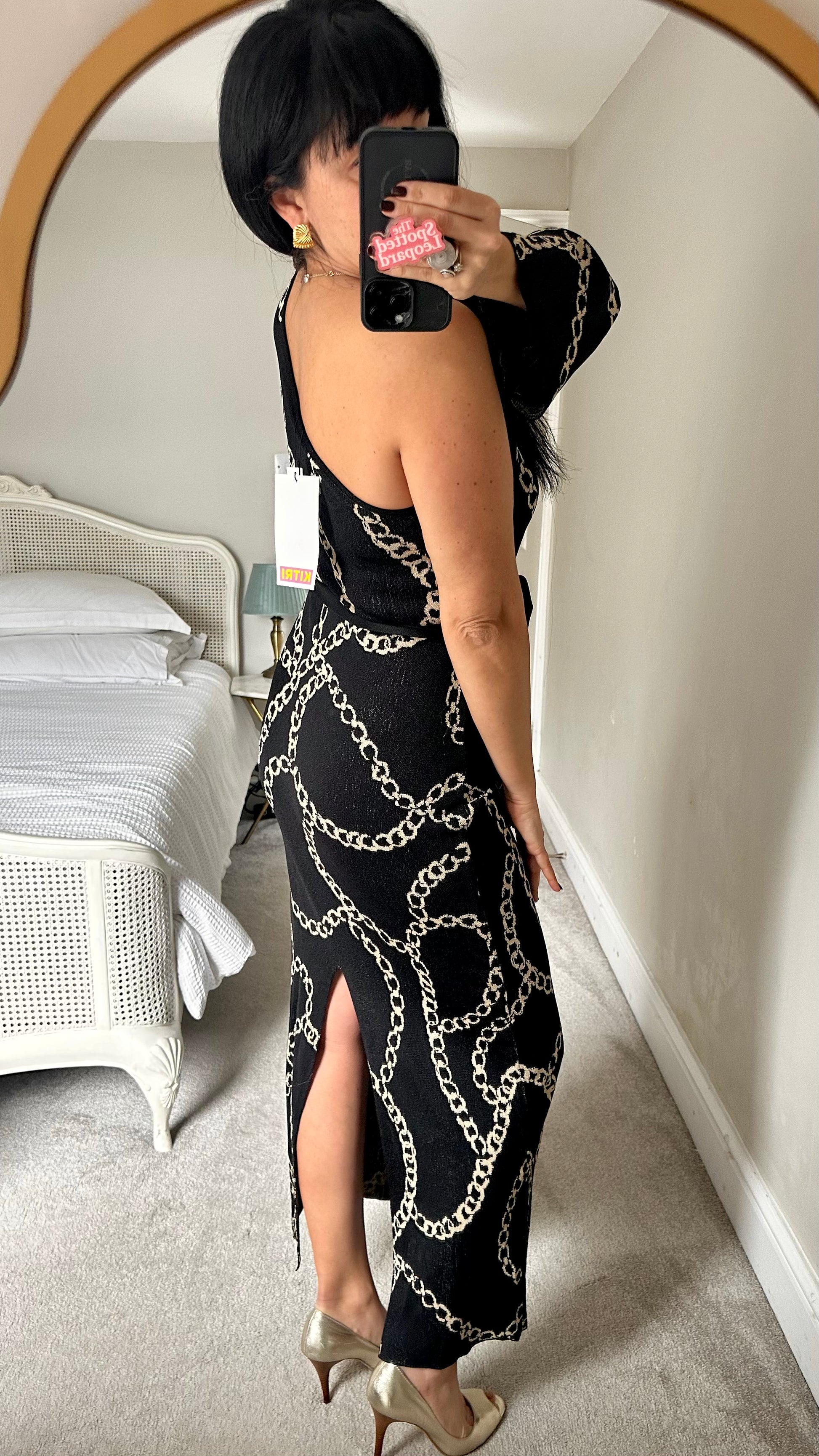 KITRI black gold chain knitted one shoulder gala party dress long small medium UK 10-12 new bnwt