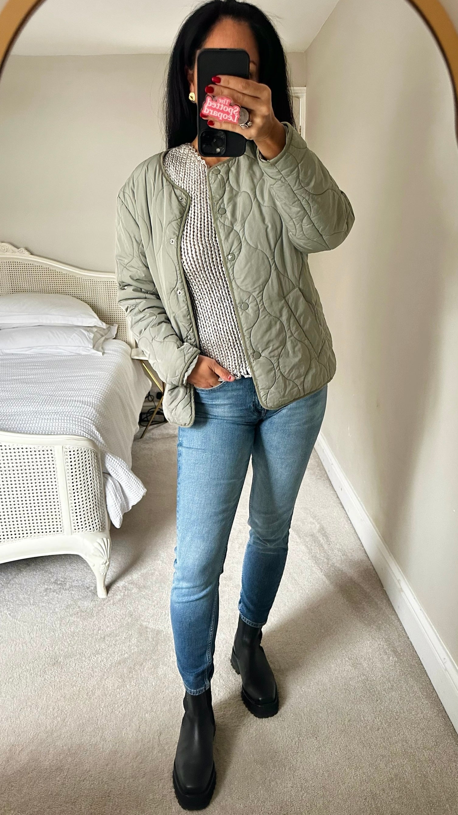 La Redoute olive khaki green quilted jacket large L UK 12-14 excellent used condition